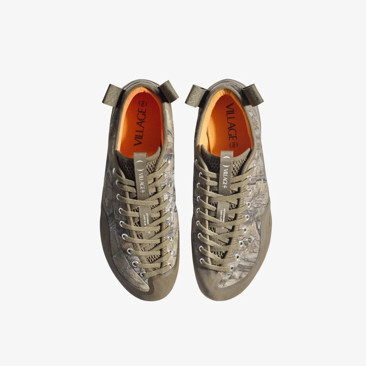 Village PM 1PM Camo låga kanvas-sneakers blandar skateboard/klättring-DNA med elegant, minimalistisk design. I normala fall! Men inte med detta släpp – här är det kamouflage som gäller!