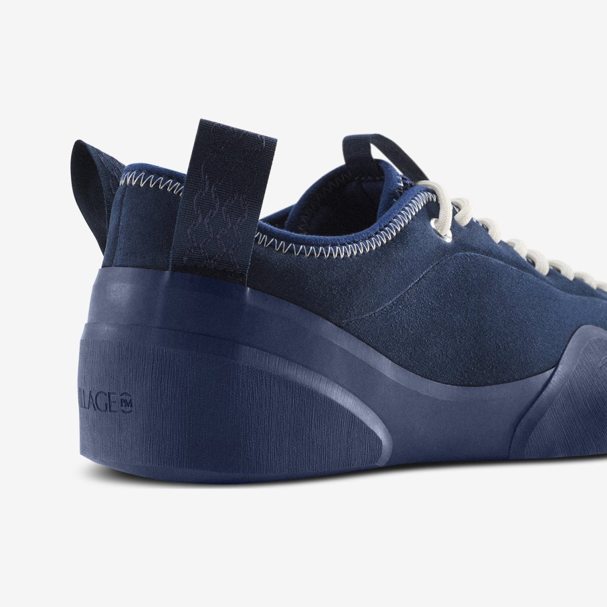 Village PM’s nya kollektion för år 2026 innehåller denna 1PM i mocka. En låg sneaker med marinblå överdel & marinblå sula med vita skosnören (du får även med en uppsättning marinblå skosnören). 1PM blandar skate-inspirerat DNA med elegant, minimalistisk design. Överdel i ett vacker & slitstark mockaskinn med en tåbox väl skyddad & kraftigt förstärkt gummirand. Skon bjuder på ren siluett, raffinerad textur & lätt känsla, vilket gör den idealisk för vardagsbruk i en urban miljö.