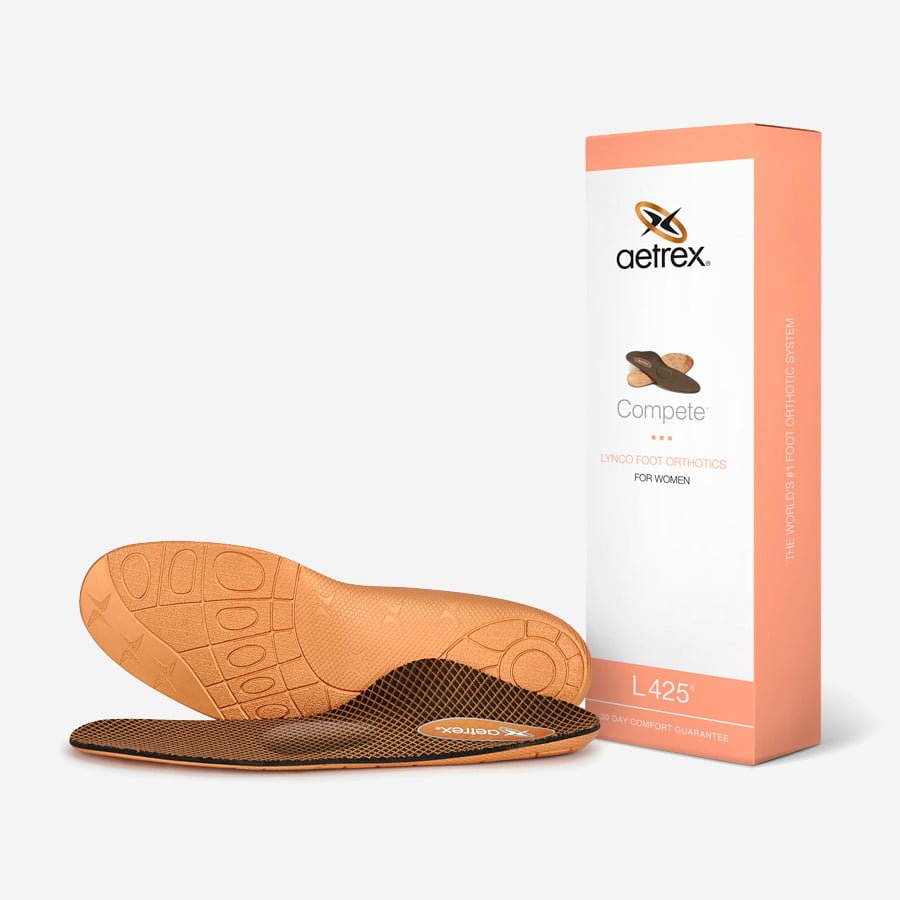 Aetrex L425 är ett stötdämpande inlägg med en extra kil mot pronation. Den är därför bäst för dig som behöver extra stöd på insidan av foten. Just den extra kilen är det som skiljer denna modell från L405. Med ett stöd för hålfoten som jämnar ut belastningen och en främre pelott som specifikt stödjer den främre trampdynan ger L425 bra avlastning för både fötter och ben. Inlägget byts ut mot din skos ordinarie sula och det är möjligt att flytta inlägget mellan olika skor.