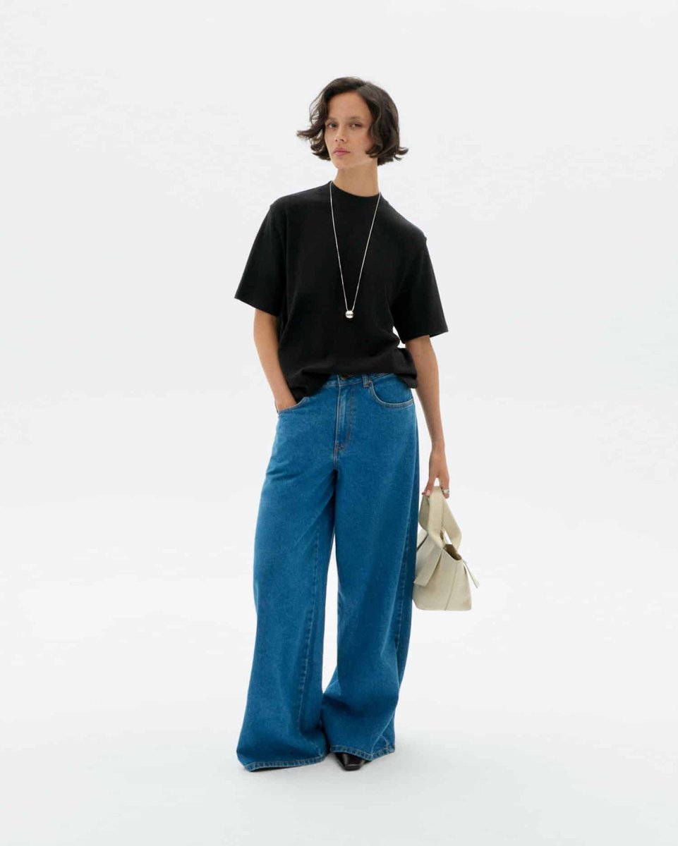 Oversize t-shirt svart dam från Thinking Mu tillverkat av deras uppskattade hampatyg som är en perfekt mix av hampa 55% och 45% ekologisk bomull. Aidin har en fin krage lite likt en mockneck.