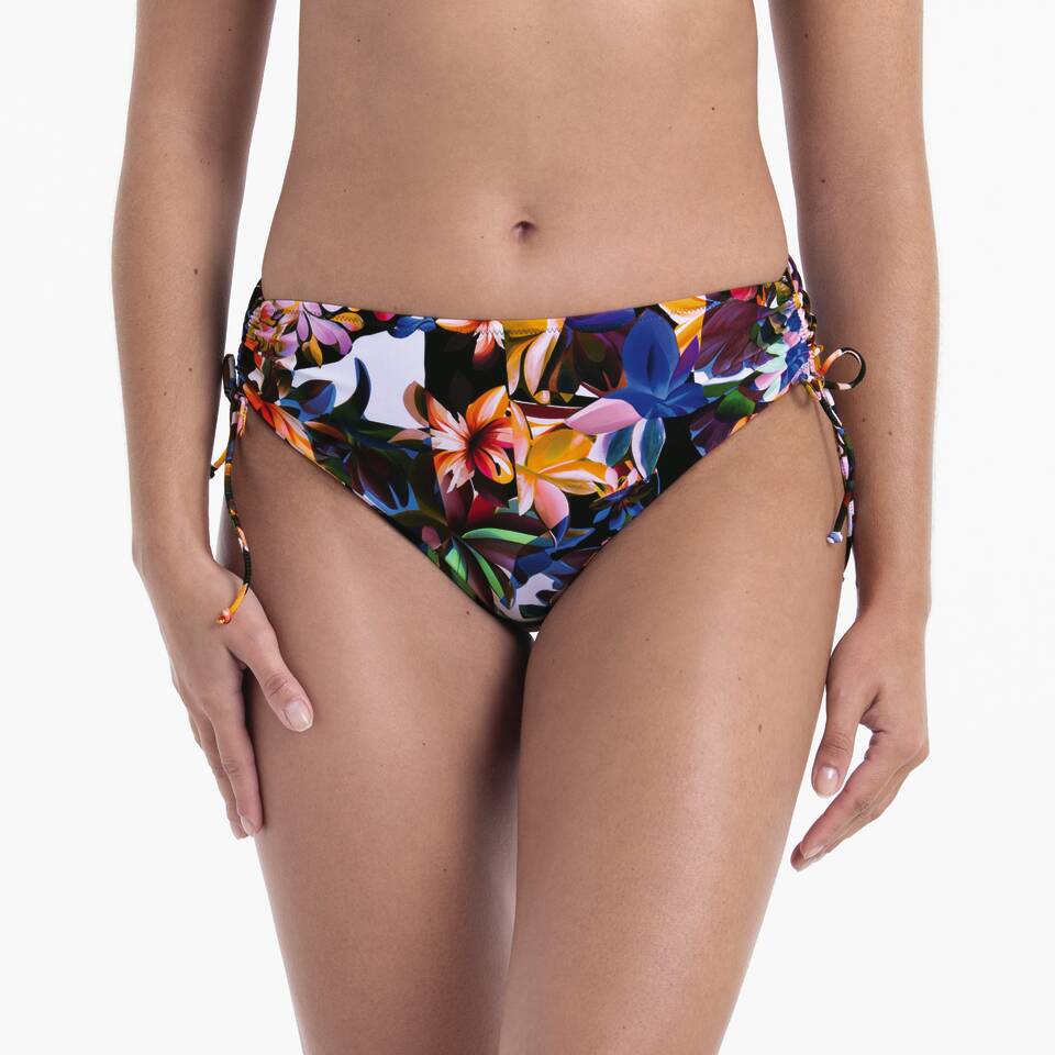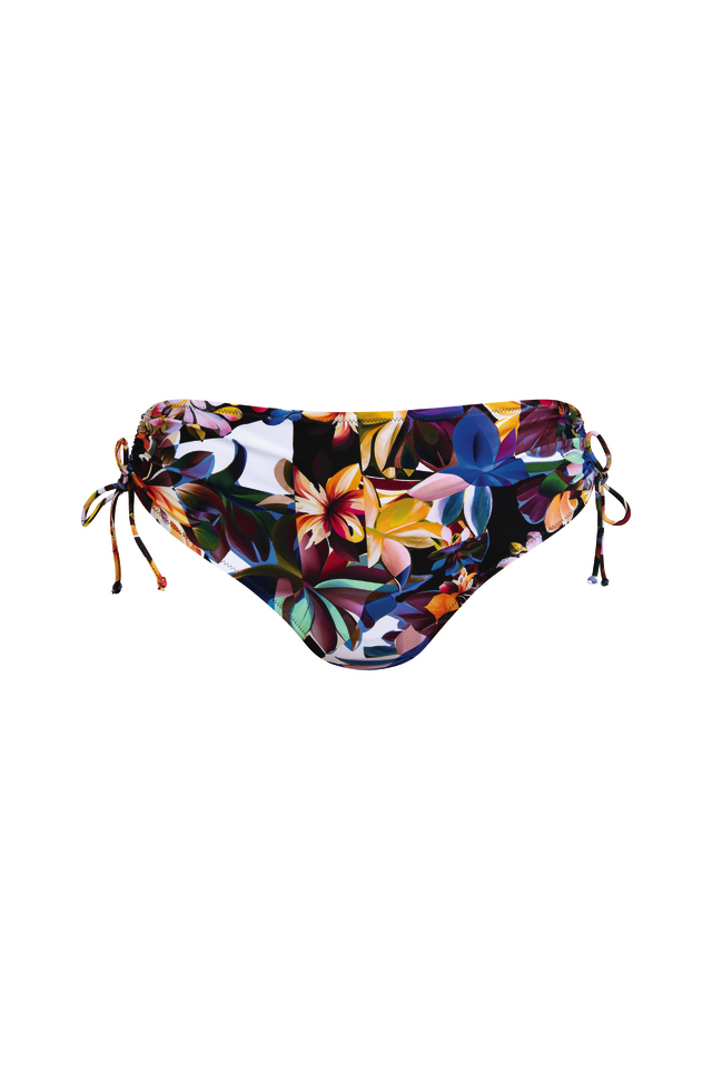 Bikinitrosan Anny har hög midja och rynkade partier i sidorna som kan justeras. Anny anpassar sig perfekt till din figur och erbjuder optimal komfort. Perfekt för soliga stranddagar och avkopplande timmar vid poolen. Unna dig denna snygga och bekväma sommarlook! Matcha med Elna bikini-bh eller Latina tankini för ett härligt blomstrande set.