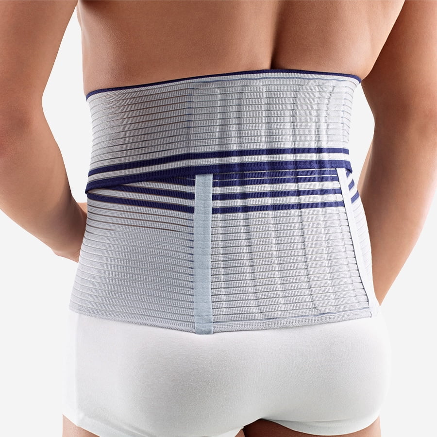 Bauerfeind LordoLoc är en stabiliserande ortos för ländryggen och övergången mot korsryggen (sacrum).