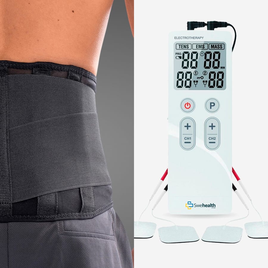 Få smärtlindring och avlastning för din ländrygg, både när du är aktiv och i vila. Med ryggstödet från Mediroyal får du en fin avlastning och ökad stabilitet i ländryggen när du aktiverar dig. Du kan enkelt, med hjälp av kardborrebanden, justera hur mycket stabilitet du behöver. SRX Ryggstöd Stabil är väldigt smidigt och användarvänligt. Med ökad stabilitet ser du till att ländryggen får välbehövlig avlastning vid de aktiviteter som behövs. I vila kör du Paingone Aegis, en TENS-apparat som är speciellt utformad för smärta i ländryggen. I det här paketet har du en komplett uppsättning för att både avlasta och smärtlindra. Ett utmärkt alternativ när du enkelt och effektivt vill minska på smärtan i ländryggen.