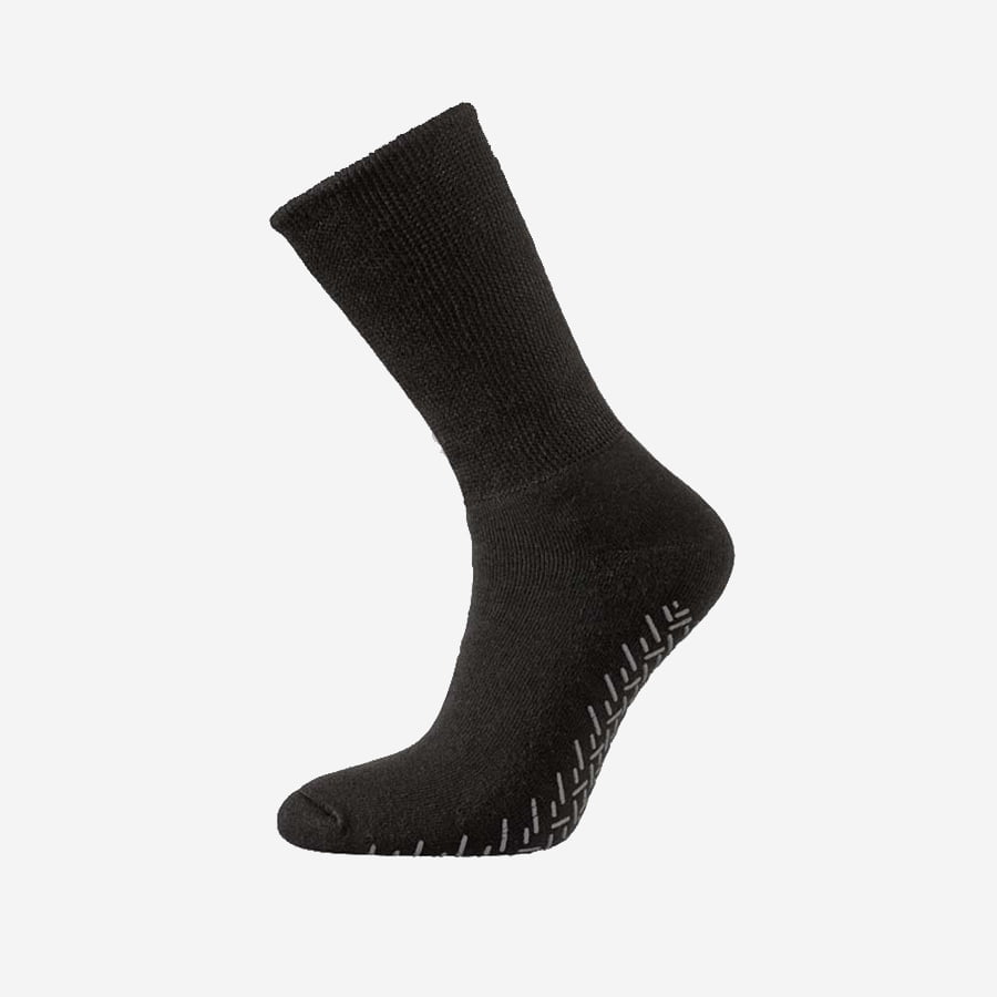 Bola Softsock Antihalk Merinoull är en riktigt mjuk socka med lös bred resår och utan sömmar. Den är perfekt anpassad för känsliga fötter och gör sig även utmärkt för dig med diabetes. Skyddar maximalt mot skav och blåsor och har halkskydd i sulorna för att du inte ska halka på hala golv. Strumporna är tillverkade i Sverige.