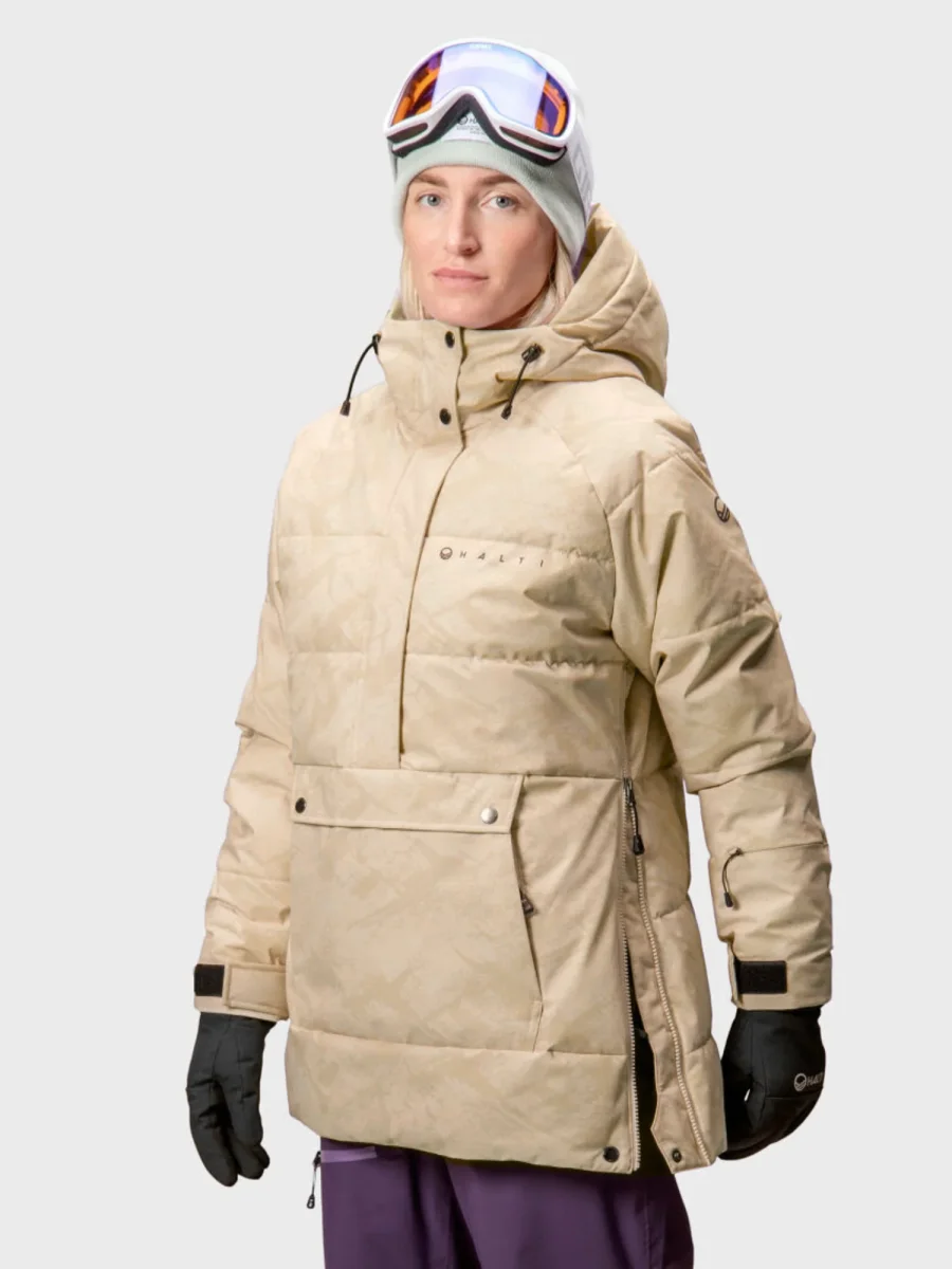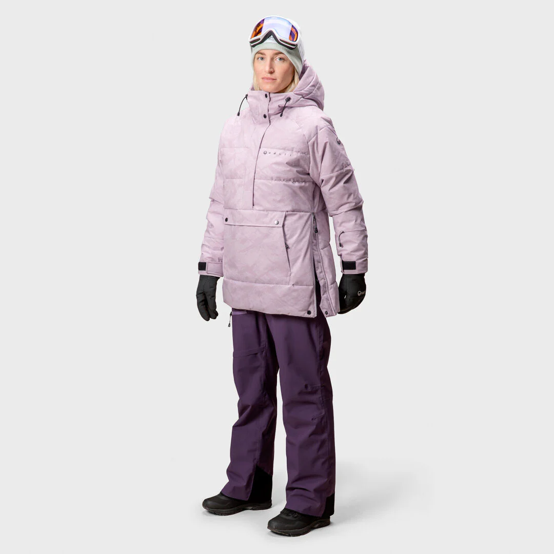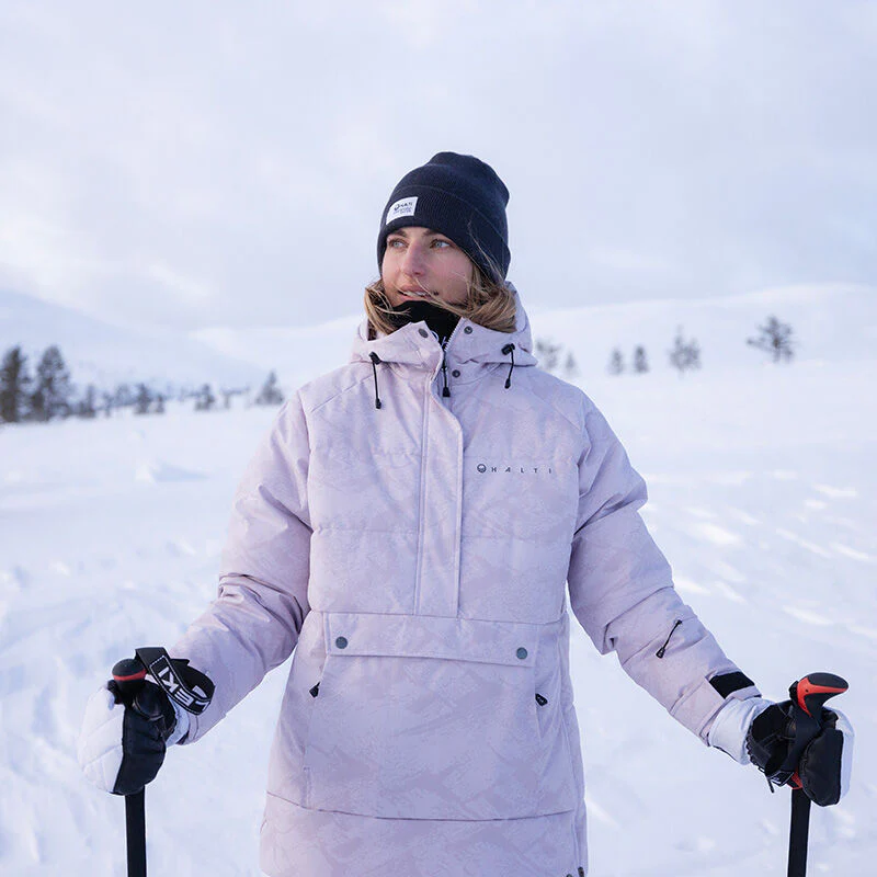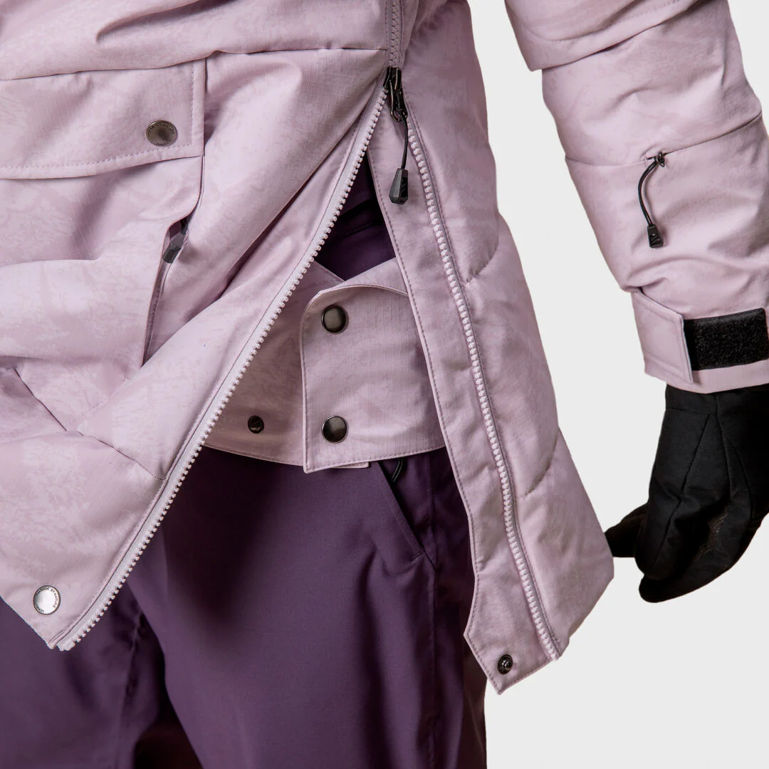 Denna skidanorak har avslappnad passform och längre bakstycke, som ger oslagbart skydd från snö, slask och kalla vindar. Den stora framfickan med tryck ton-i-ton fullbordar stilen – bortsett från den lavendelgrå färgsättningen som är gjord av ett djärvt tyg med heltäckande tryck ton-i-ton.