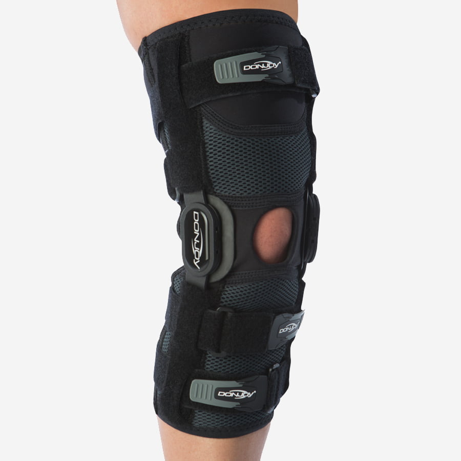 DonJoy Playmaker II är ett knäskydd med fokus på stabilitet. Den är ett ypperligt alternativ för dig som drabbats av korsbandsskada eller lider av instabilitet i knäleden till följd av en skada på sidoledbanden. Med skenor på sidorna av knäleden få du utmärkt stabilitet i sidled. De dubbla justerbara banden över och under knäleden förbättrar ytterligare passformen och stadgan. Skenorna på Playmaker II är självklart ställbara för att, vid behov, begränsa rörligheten i både flexion (böjning) och extension (sträckning) av knäleden.