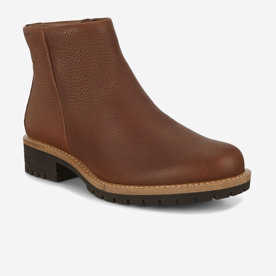 Ecco Elaine är stilrena boots där man snyggt framhävt sulan för att skapa en lite robustare och mer arbetsinspirerad stil. Dragkedja längs insidan.