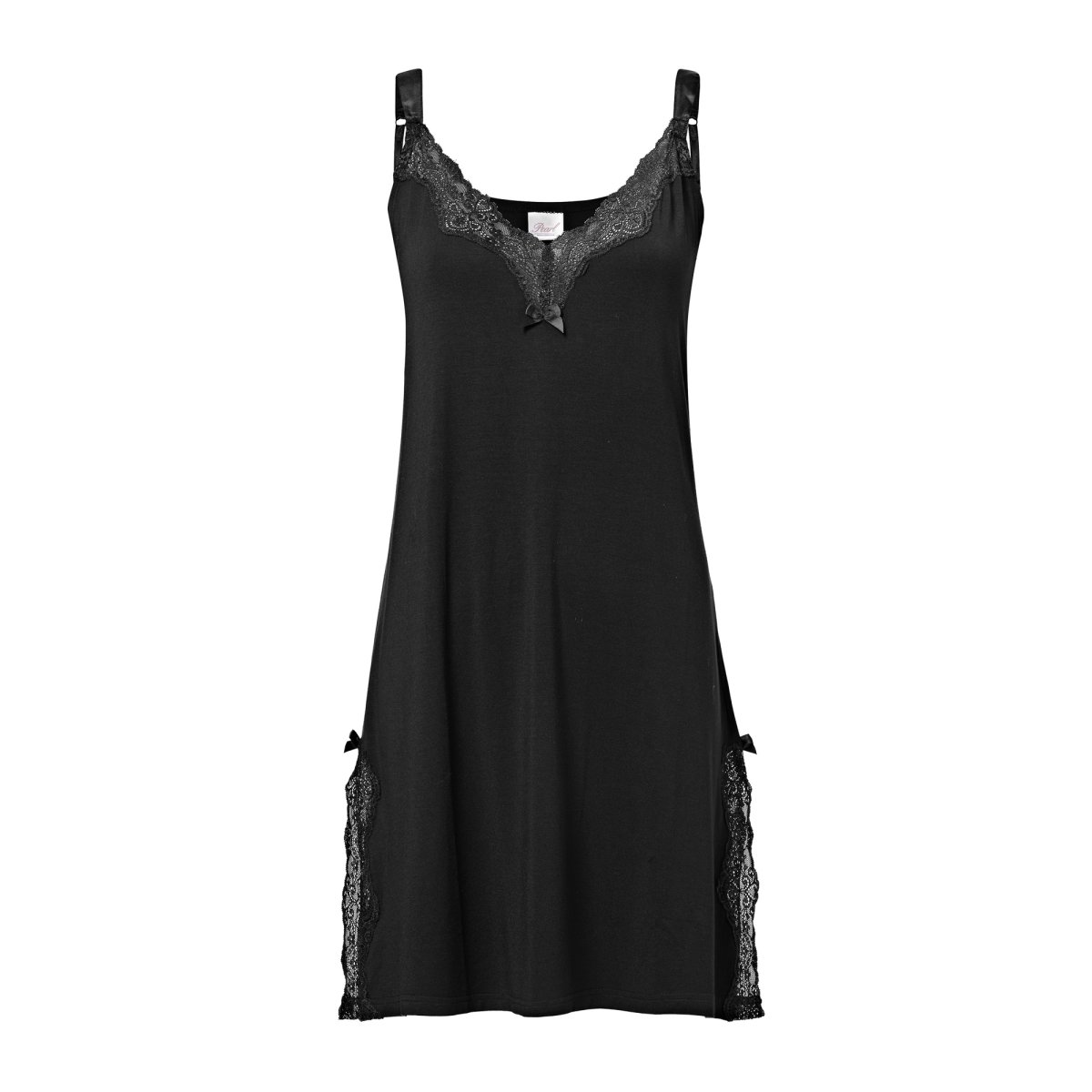 Nattlinne med smala band, fina spetsdetaljer och rosett. Tillverkad i mjukaste modal. Liten slits om 15 cm på båda sidorna.