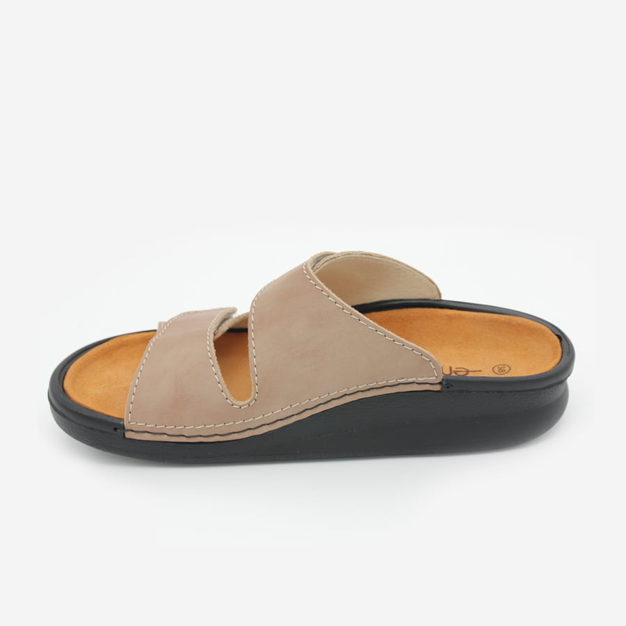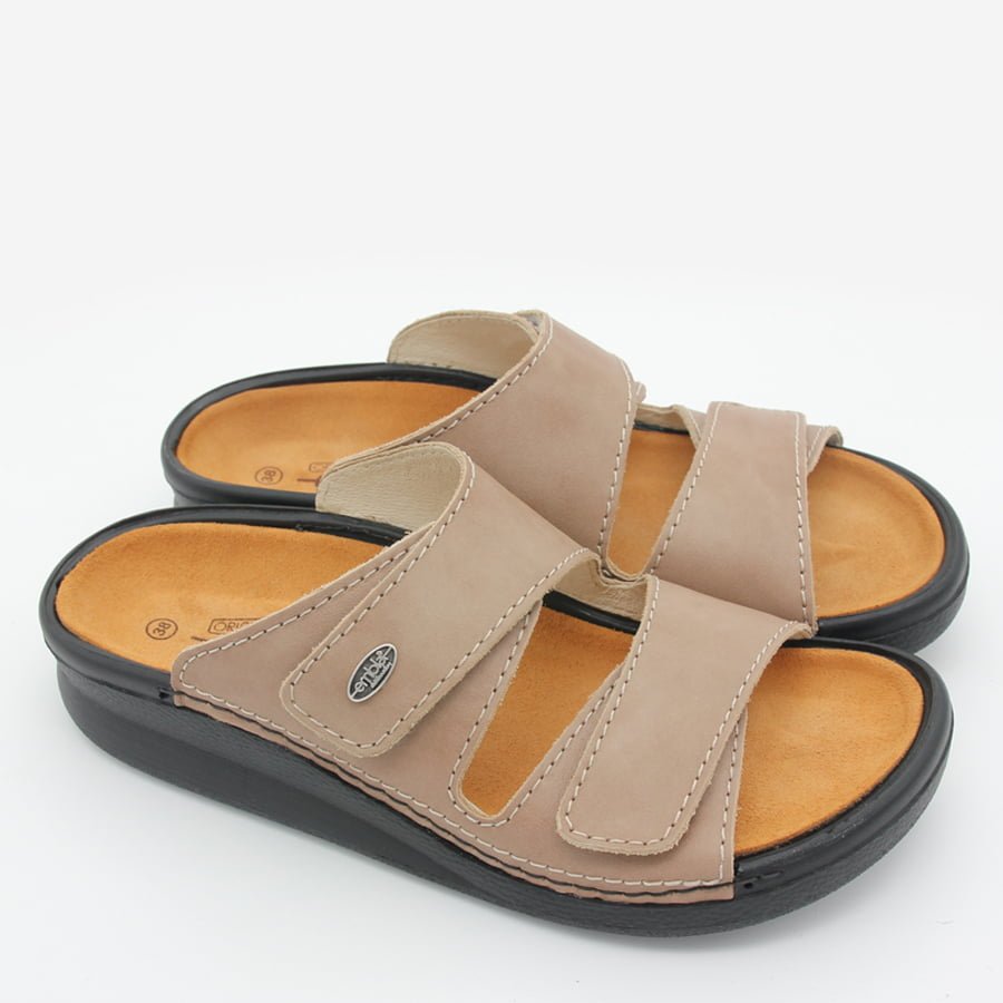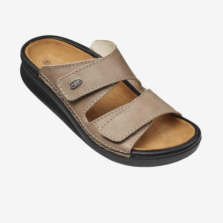 Embla 2415 är en relativt bred och rymlig sandal med dubbla kardborrespännen. Den har en lös innersula som kan bytas mot egna fotbäddar eller ortopediska inlägg vid behov.