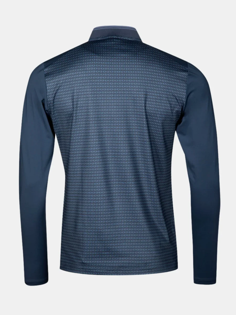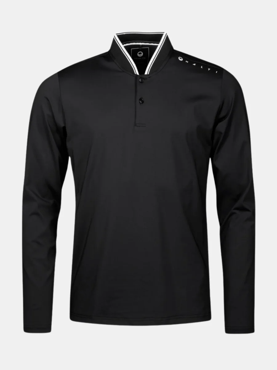 Teknisk tröja för golf. Lätt och fukttransporterande tyg tillverkat av delvis återvunnet material har använts vid tillverkningen av denna tröja.