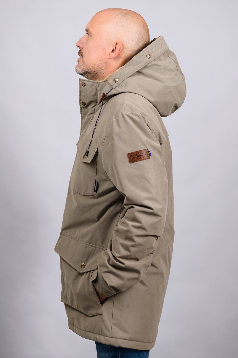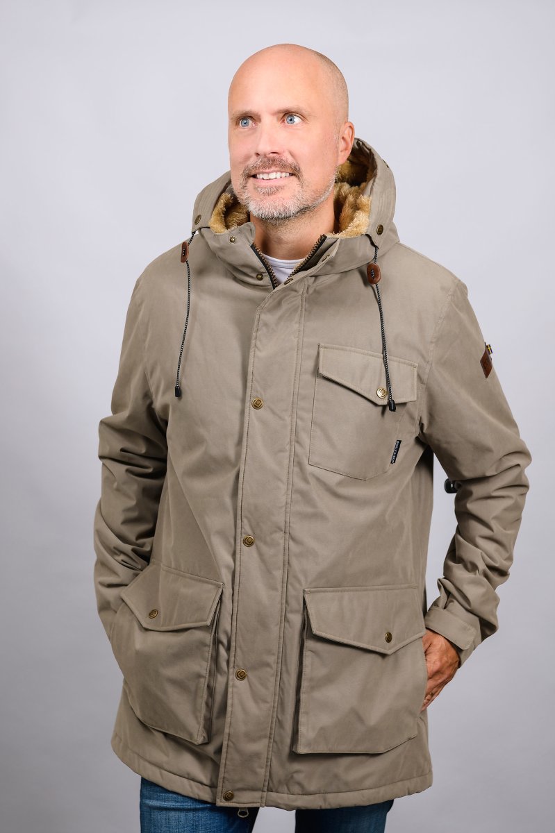 FALUN är en varm lång vinterjacka i ett mjukt borstat vindtätt och vattenavstötande yttertyg med Cobtex 5000 membran. Huvan och överkroppen är fodrad med härligt värmande mjuk Pile.