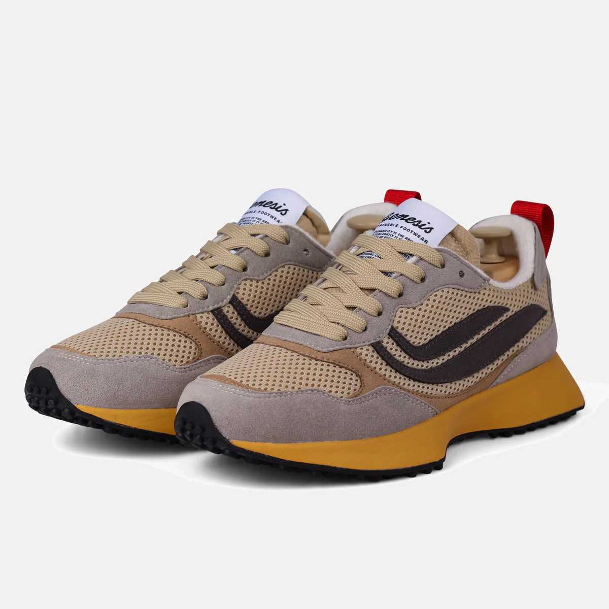 Förutom att Genesis uteslutande använder betydligt mer miljösmarta material i sin veganska sneakers än konventionella veganskor så är det inom komfort & slitstyrka som de står ut. Skorna är sköna & fräscha och något av favoriterna bland våra anställda som hårdtestat deras sneakers under föregående säsonger.