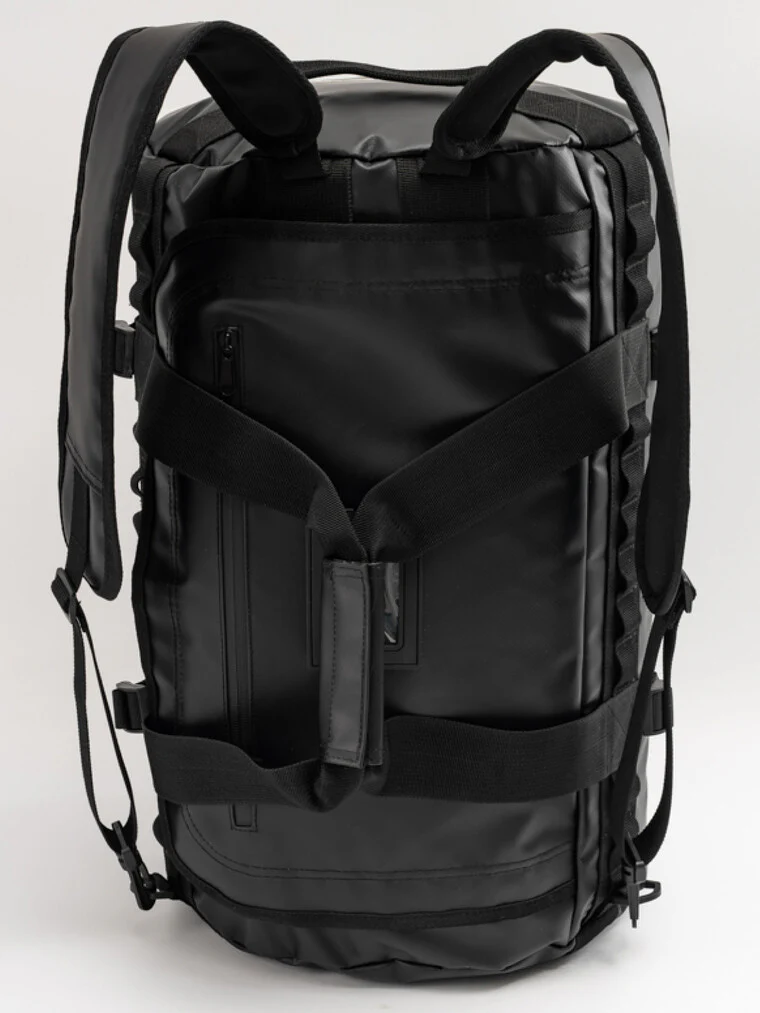 Enkel duffelväska i svart presenning. Tarpaulin är ett slitstarkt och vattenavvisande material. Väskan är sydd med dubbla sömmar och kan bäras både på ryggen och kors över kroppen. Axelremmarna är justerbara och vadderade. Om du vill bära väskan i handen kan axelremmarna tas av. Väskan är perfekt för weekendresor och resor. Du kan ta med dig väskan som handbagage när du reser med flyg – dess mått är lämpliga för det. Försedd med GymDanmarks logotyp på ena sidan. På väskans ”lock” finns en ID-ficka där du kan skriva ditt namn. Inuti väskan finns en liten ficka med dragkedja för viktiga föremål. [b] Denna artikel kan inte bytas eller returneras på grund av klubblogotypen. [/b] Vi uppmuntrar byten inom klubben.