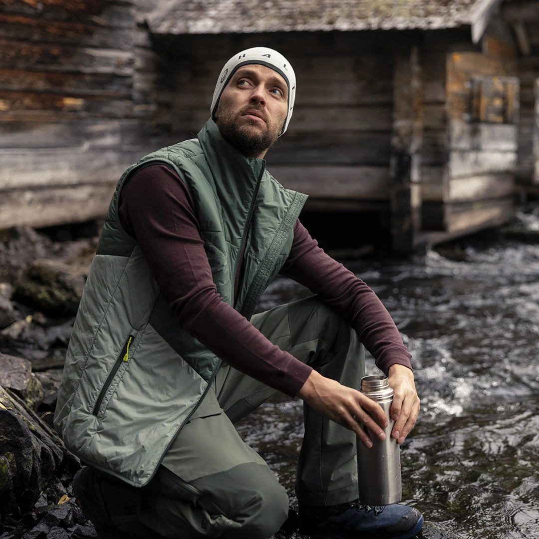 Heatix-västen – din nya favorit när det gäller värme och mångsidighet! Västen är tillverkad av tunt återvunnet ripstop-material i nylon och fylld med återvunnen Primaloft® Silver-vaddering, vilket gör att den är teknisk, lätt och slittålig.