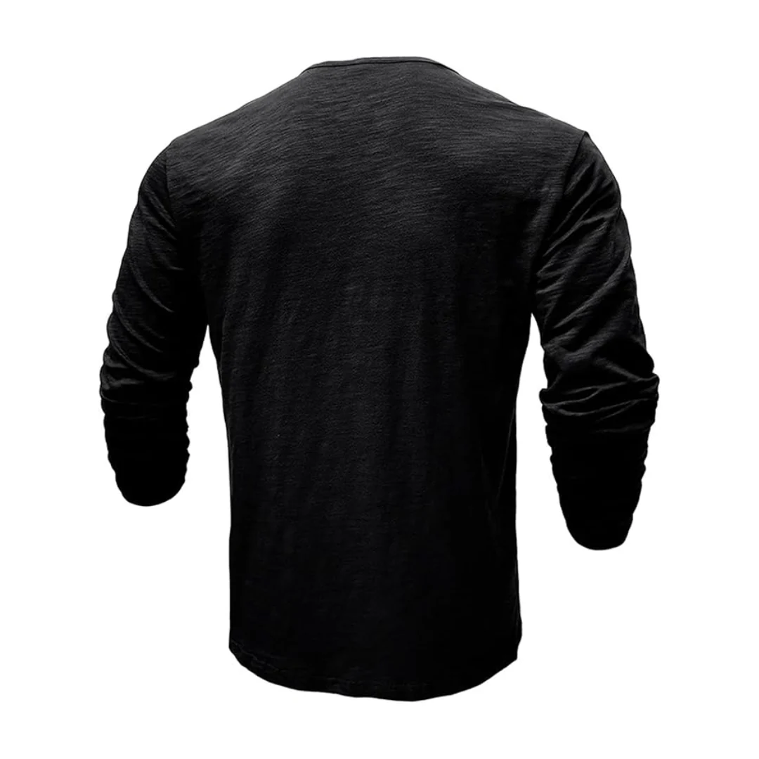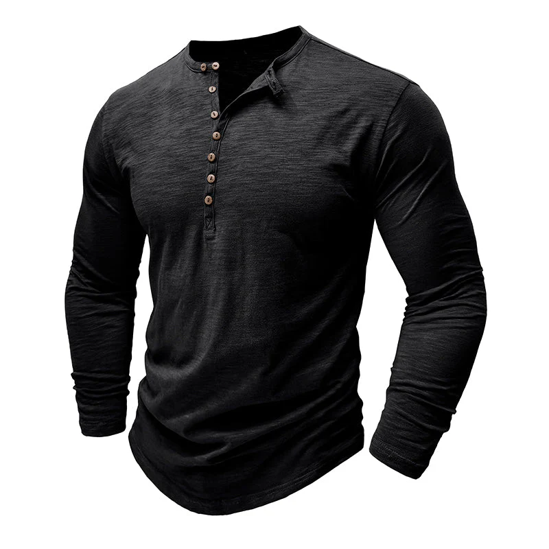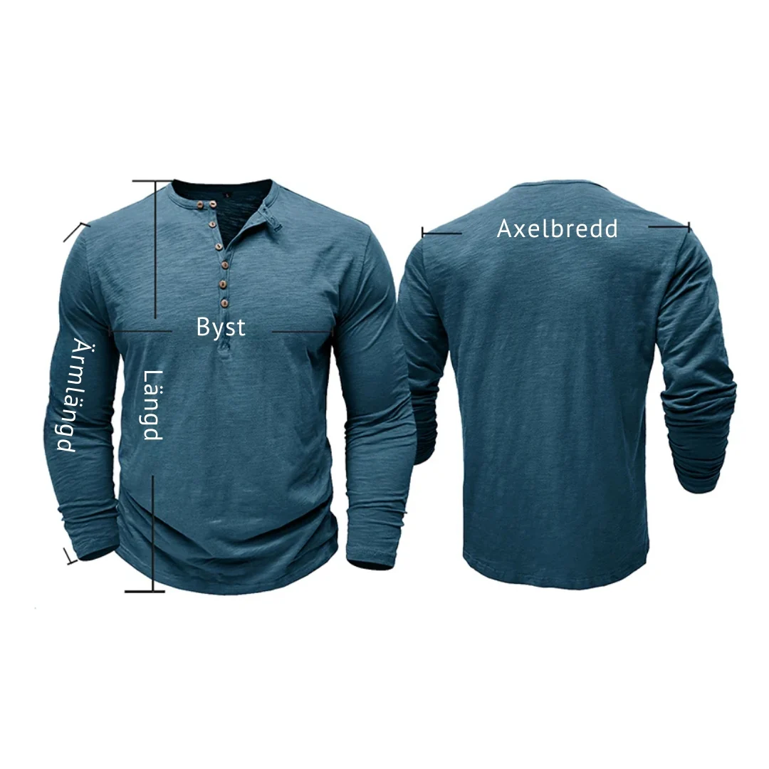 Den unika designen, med sju knappar på bröstet, lägger till en distinkt touch till den klassiska Henry-skjortan och sätter den isär med stil och sofistikering.