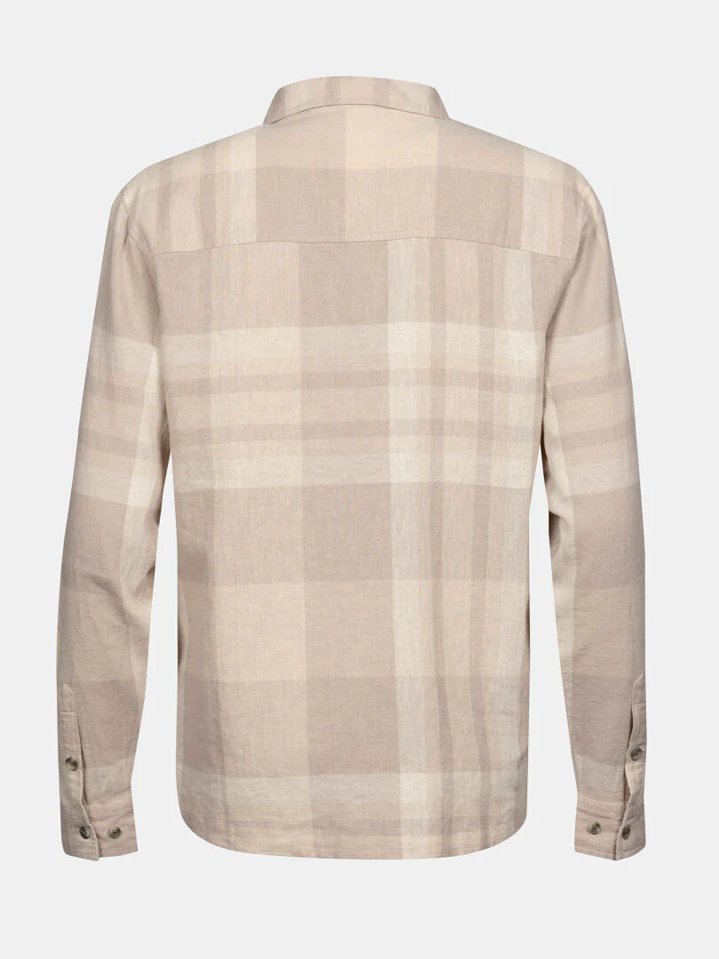 Skjortans tyg är helt tillverkat av naturfibrer – hampa och bomull. Hampa utgör 55 % av blandningen och återstående 45 % är bomull.