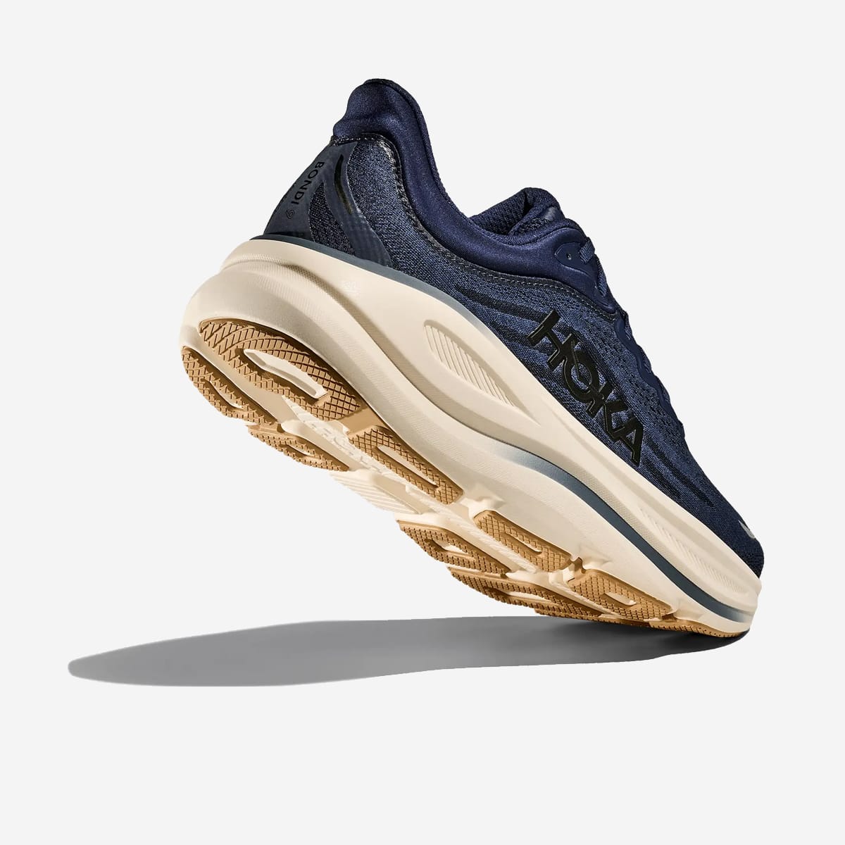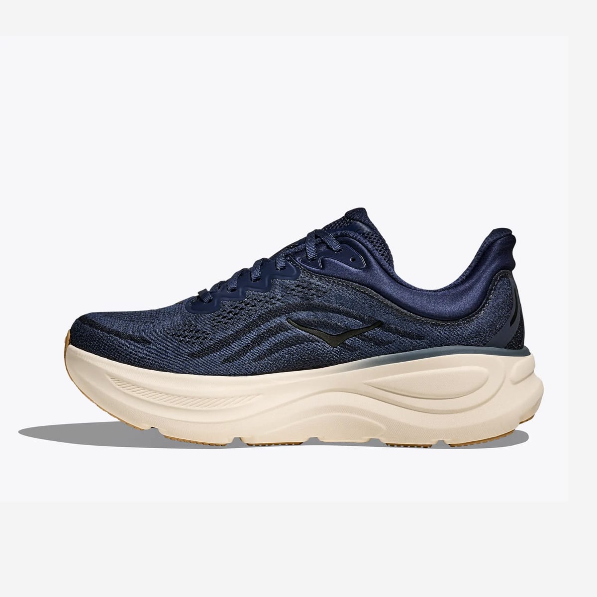 Dämpning, dämpning och dämpning. Det råder inga tvivel om vilken egenskap som står i fokus när det kommer till Hoka One One Bondi 9. Årets modell har fått ytterligare två millimeter höjd i mellansulan och ett förbättrat foammaterial. Utöver det är det lite förändrade material i ovandelen och plösen som skiljer mot tidigare version. Men som sagt, Bondi 9 köper du när det är maximalt med stötdämpning du behöver eller är på jakt efter.