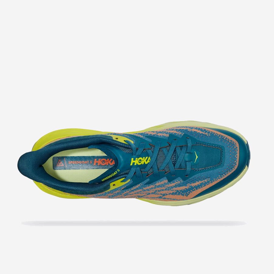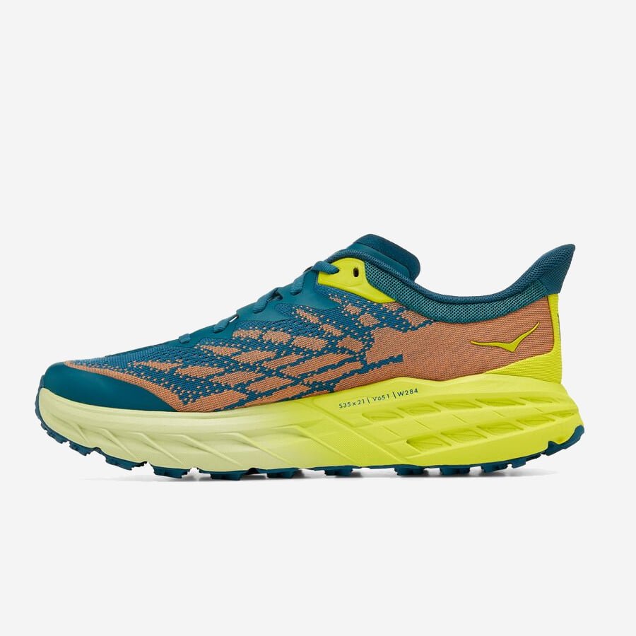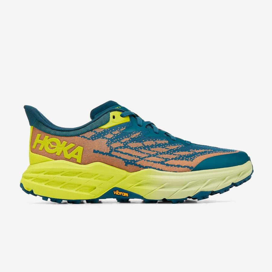 Hoka One One Speedgoat 5 Wide är en perfekt partner för dig som älskar terränglöpning. Tillräckligt dämpad för lågpasset, löpglad och lätt i teknisk terräng. Och med Vibram Megagrip sulan har du grymt grepp både i leriga förhållanden eller halkiga stenar. Den behagliga rullsulan avlastar din kropp och ser till att du är piggare även i slutet på ett långpass. Det här är en Wide läst så den passar bäst för dig med något bredare fötter eller om du vill ha lite mer utrymme för tårna.