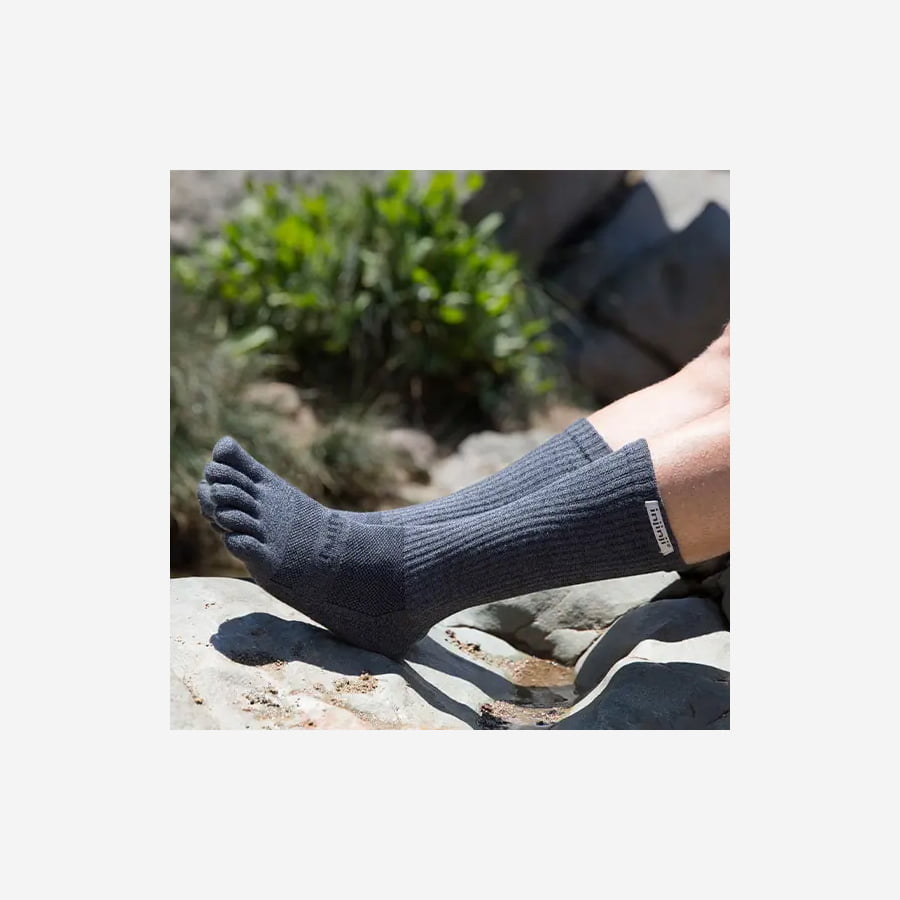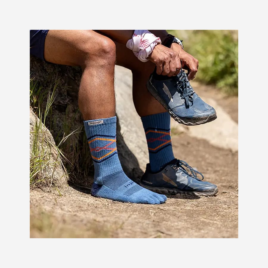 Injinji Trail Midweight Crew Herr är en tåstrumpa med normalhögt skaft som ger gott skydd för dina fötter. CoolMax materialet håller fötterna torra och svala samtidigt som materialet på undersidan strumpan ger lite extra skydd för fotens mer utsatta områden. Injinji Trail Midweight Crew är ett fint alternativ att använda vid löpning i terräng men självklart också för dig som vill ha dem till vardags.