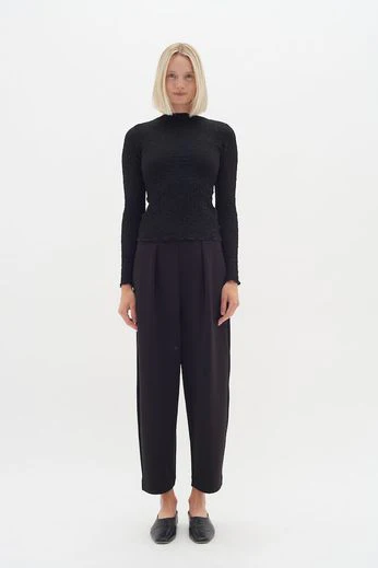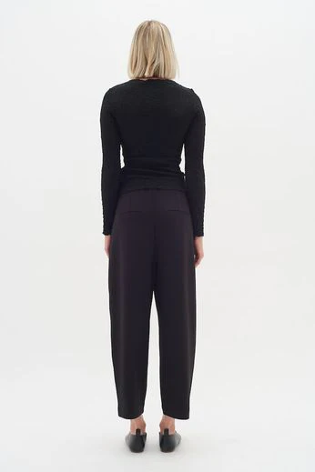 Pannie Pant från InWear är en byxa som funkar lika bra till vardag som till jobbet. Modellen har en mjuk barrelbyxa i en avslappnad passform som sitter snyggt utan att kännas tight. Midjan är bekväm och byxan faller fint längs benen, vilket gör den lätt att bära hela dagen.