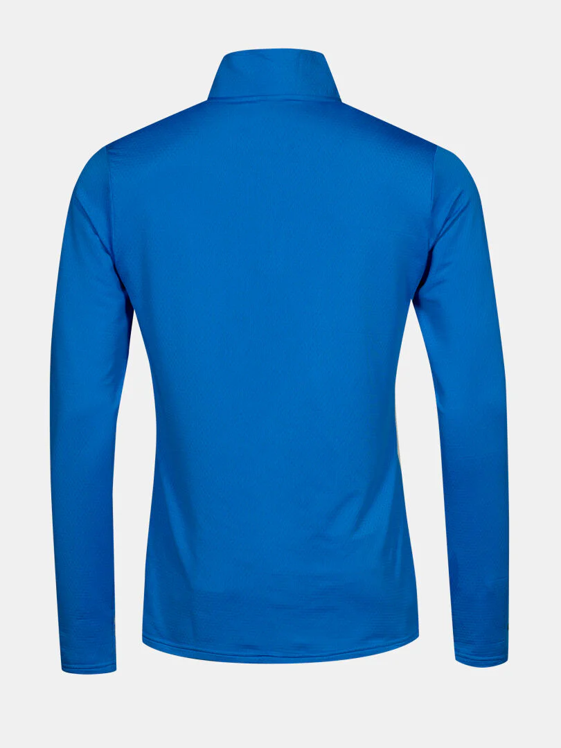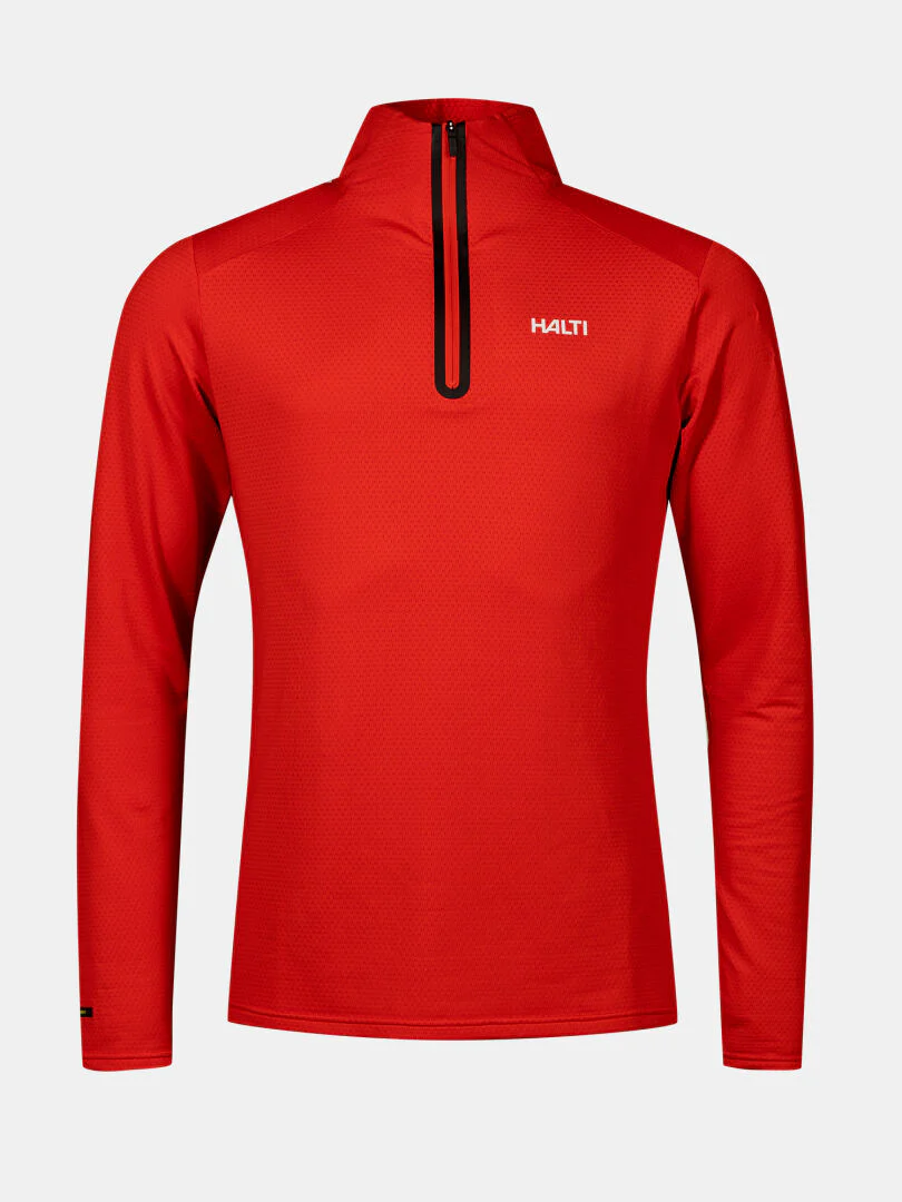 Active Dry Sport Knit-materialet har en slät utsida för bra lagerfunktion och en mjuk rutnätsstruktur på insidan som effektivt transporterar bort fukt. Halvlång dragkedja och ståkrage gör det enkelt att reglera temperaturen under varierande förhållanden.