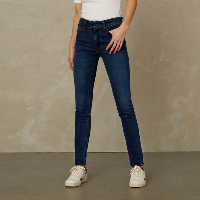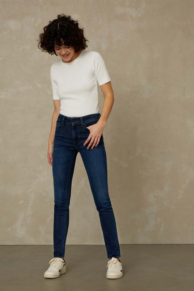 Juno Clean Medium Used från KOI – Kings of Indigo är ett par klassiska slim-fit jeans i 99% ekologisk bomull med god stretch från återvunnet elastan. Juno Medium har åtsittande lår och sitter halvhögt på midjan. Jäkligt snygga damjeans men framförallt imponerande att KOI´s återigen leder utvecklingen framåt med sitt nytänk inom renare produktionstekniker.