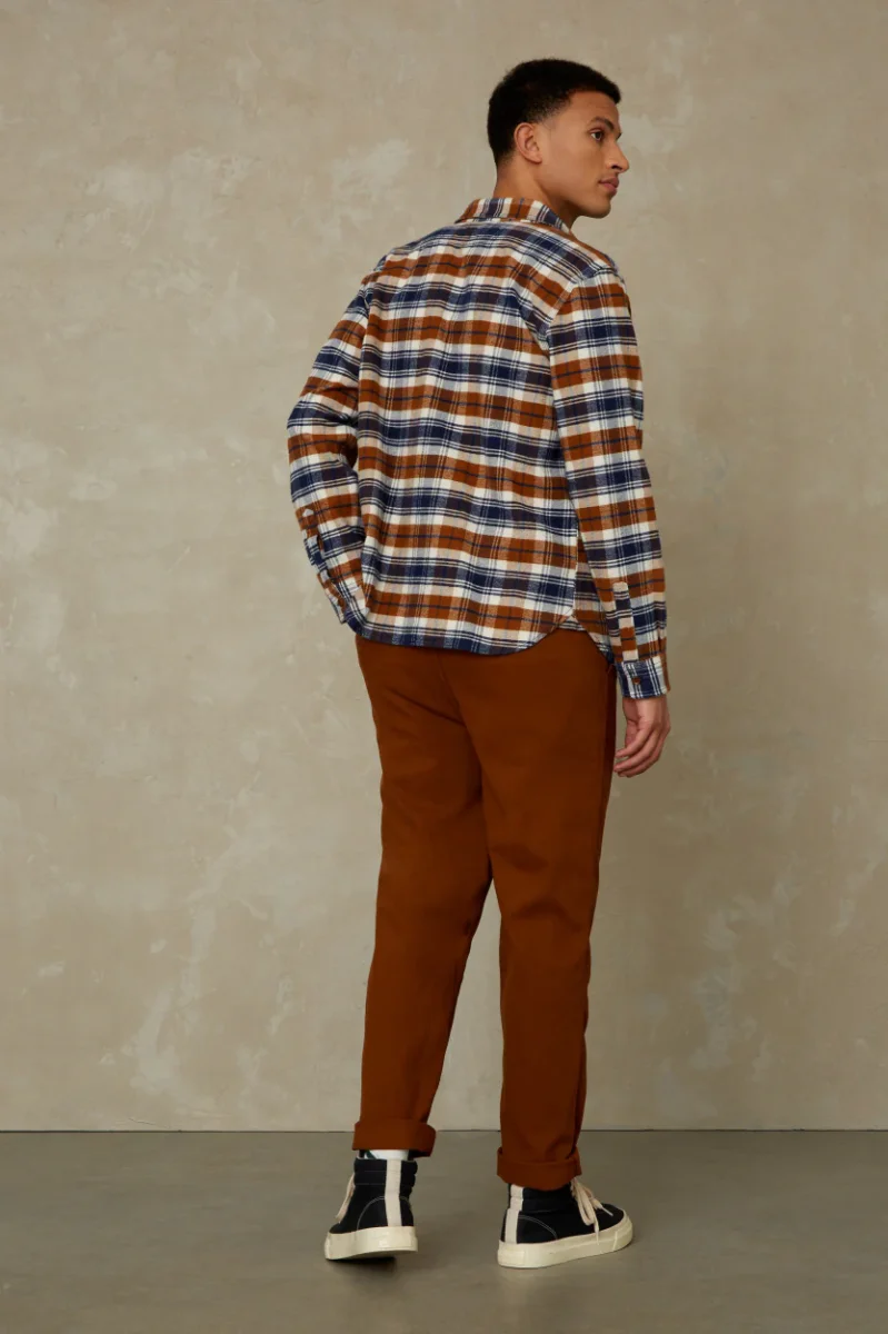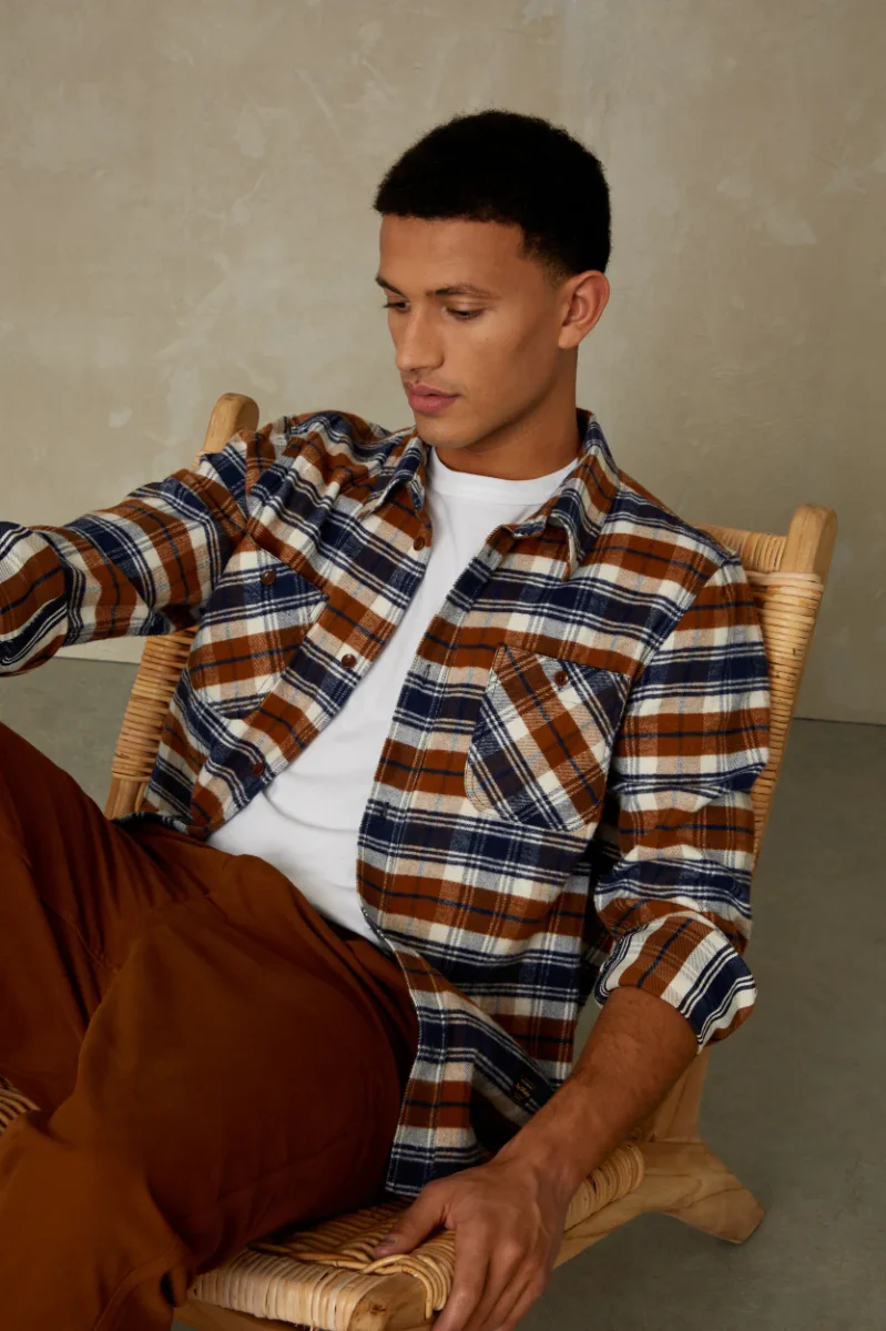 Tjock & ekologisk flanellskjorta från KOI – Kings of Indigo i en klassiskt avslappnad & ledig passform. Varje höst kommer en ny Juntoku som flanellskjorta och de går inte av för hackor. Ett mjukt men ändå rejält kraftig flanelltyg i GOTS-certifierad 100% ekologisk bomull ger denna pjäs en ordentlig workwear-feeling samtidigt som den levererar sjukt slowfashion-poäng.