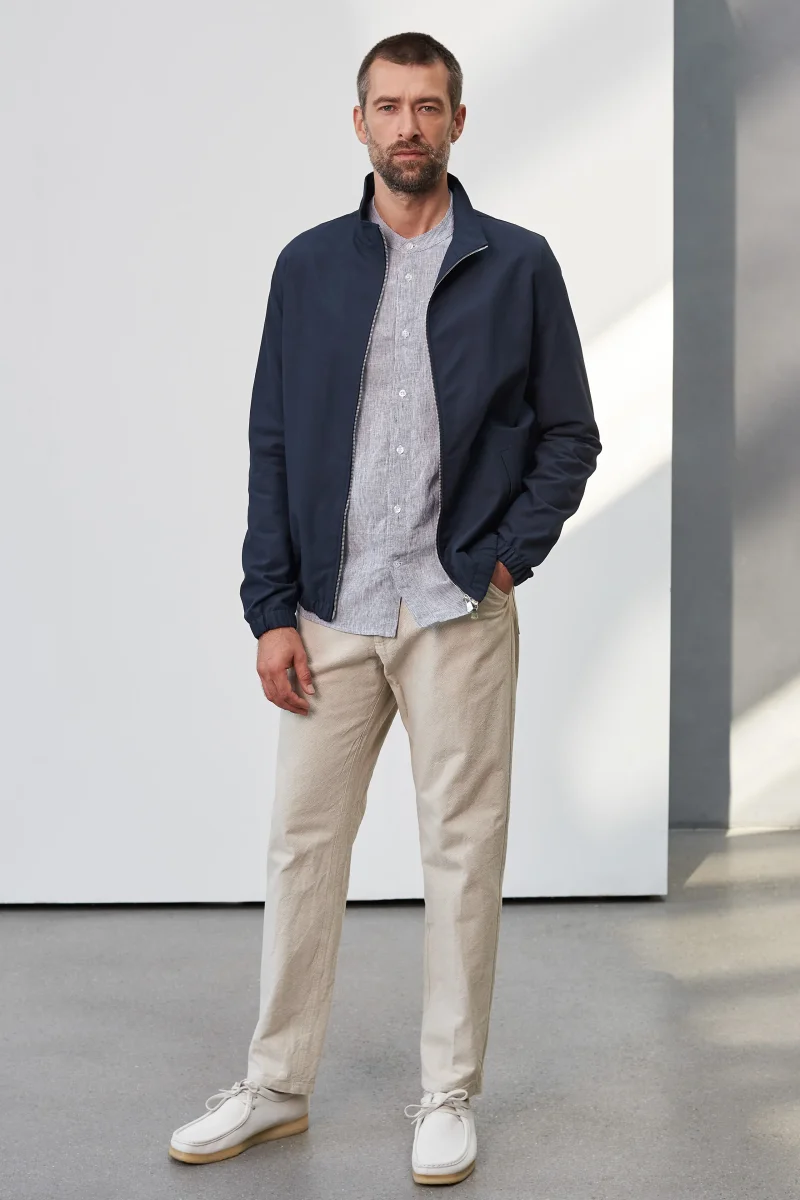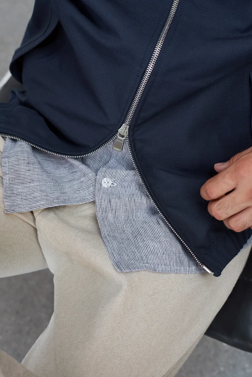 Juri Cold Navy från About Companions är en otroligt stilren sommarjacka i tunn Tencel™. Minimalistiskt uppdaterad Harringtonjacka som utrustats med en 2-vägsdragkedja vilket uppskattas rejält. Passformen är helt suverän tack vare muddarna kring midjan och ärmsluten.