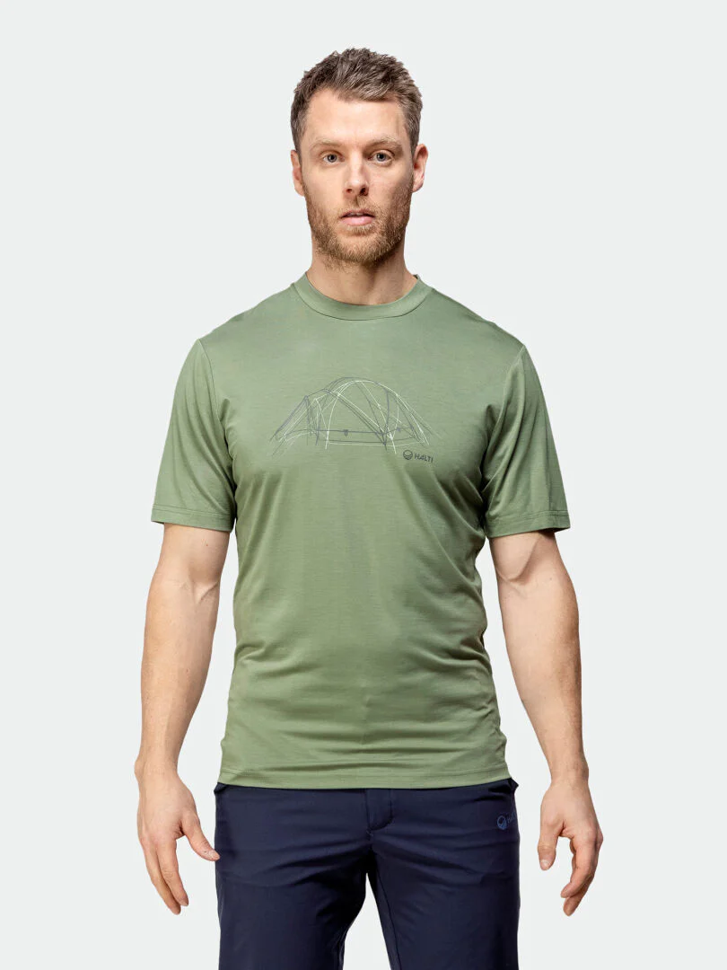 Tyget är slitstarkt, tekniskt och lätt, och känns bekvämt mot huden. Tillverkad av EcoCosy®, som kommer från certifierad hållbar trämassa, och blandad med teknisk Sorona®, är denna t-shirt ett utmärkt val för vardagsbruk.