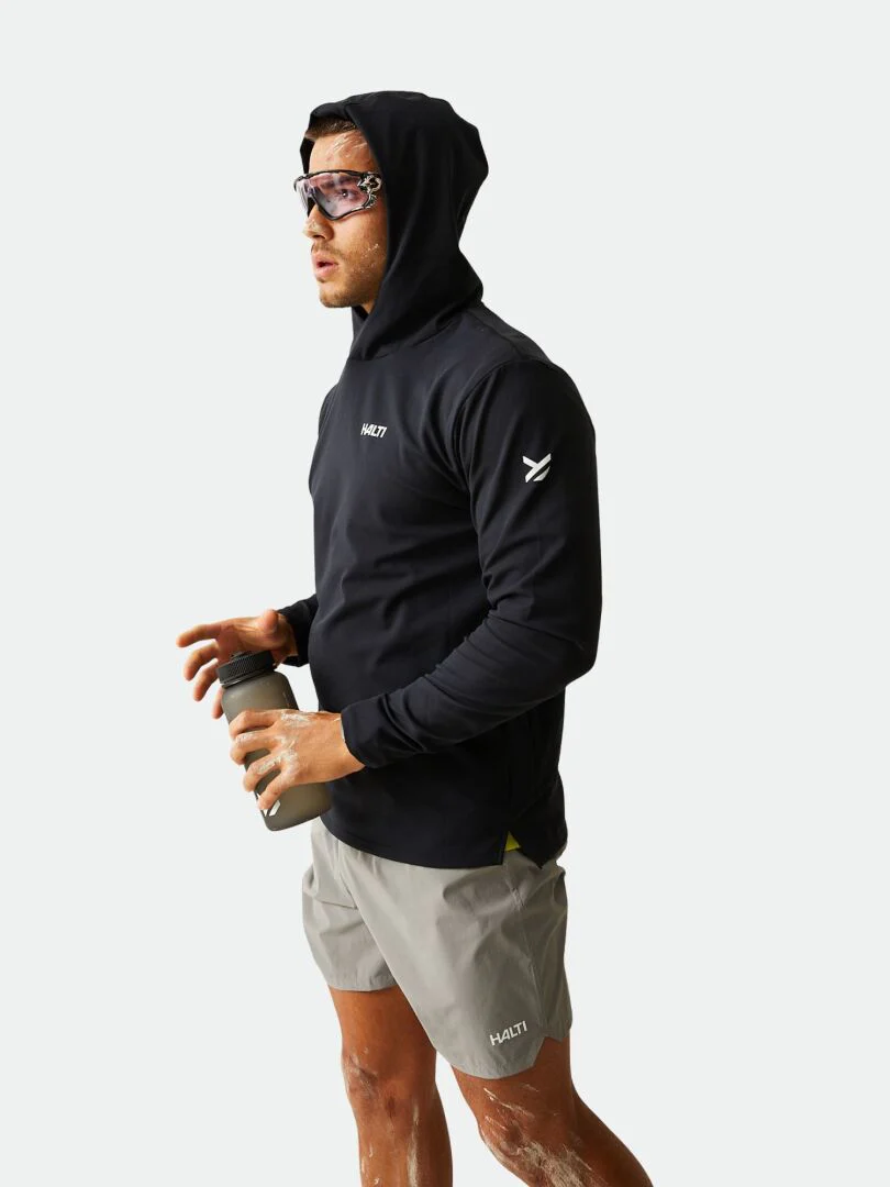 Kaltio är framtagen för intensiv träning, löpning och snabba utomhuspass där rörelsefrihet och komfort är lika viktiga som prestation. Passformen är avslappnad utan att kännas lös. Den fasta huvan sitter på plats under aktivitet, och den inre ståkragen ger extra komfort vid kyligt eller blåsigt väder. Bakfickan håller dina viktigaste saker säkra utan att störa rörelsemönstret. Med UPF 50+ skydd klarar du långa pass under öppen himmel.