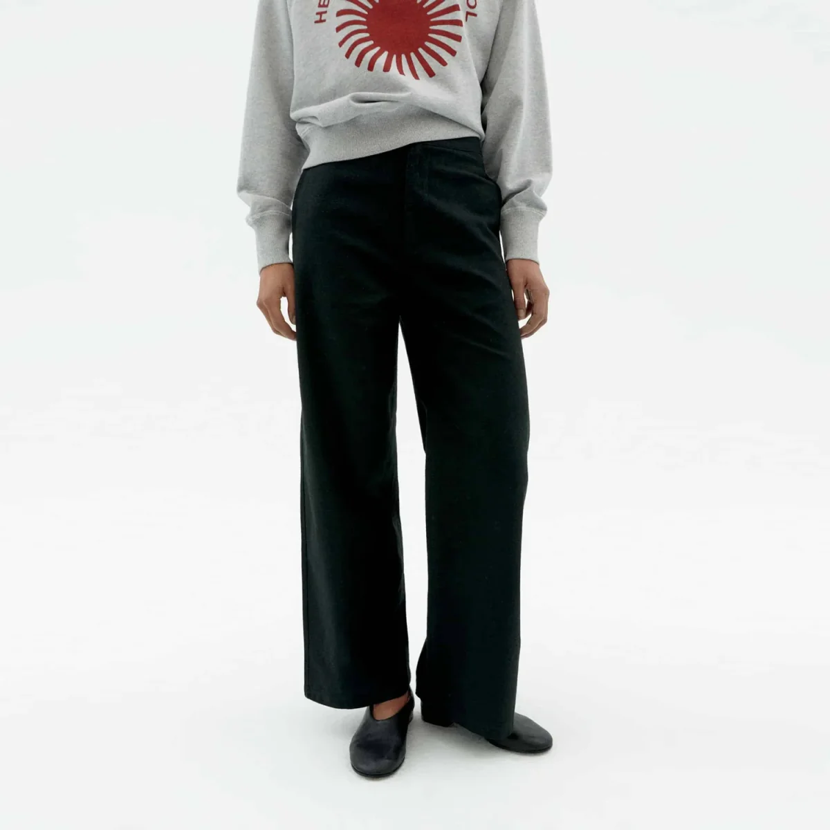 Karina svarta byxor gjorda av ekologisk bomull.