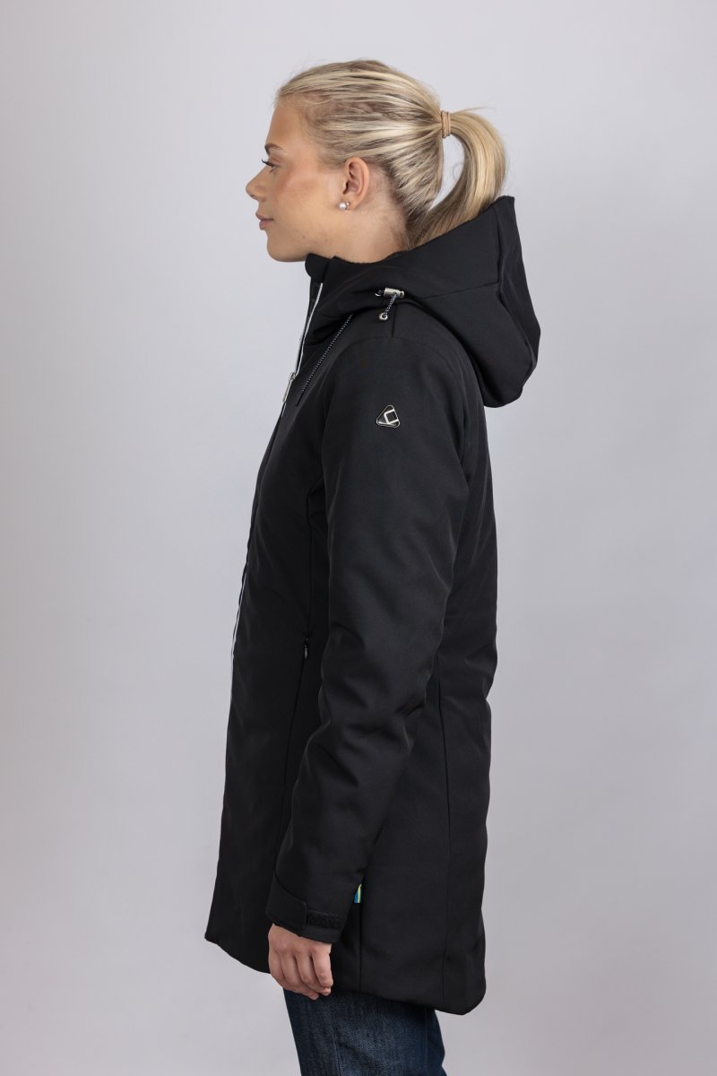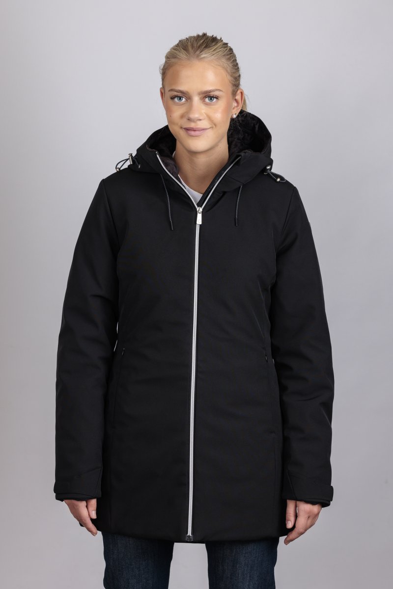 KAROLINA PARKA , är en lång vadderad ganska varm jacka i ett yttertyg i Softshell med COBTEX 5000 membran.