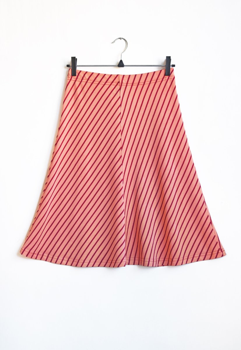 Klockad kjol i fyra våder med resår i midjan. Kvalitet 55 % viskos och 45 % bomull. Maskintvätt 40 grader.