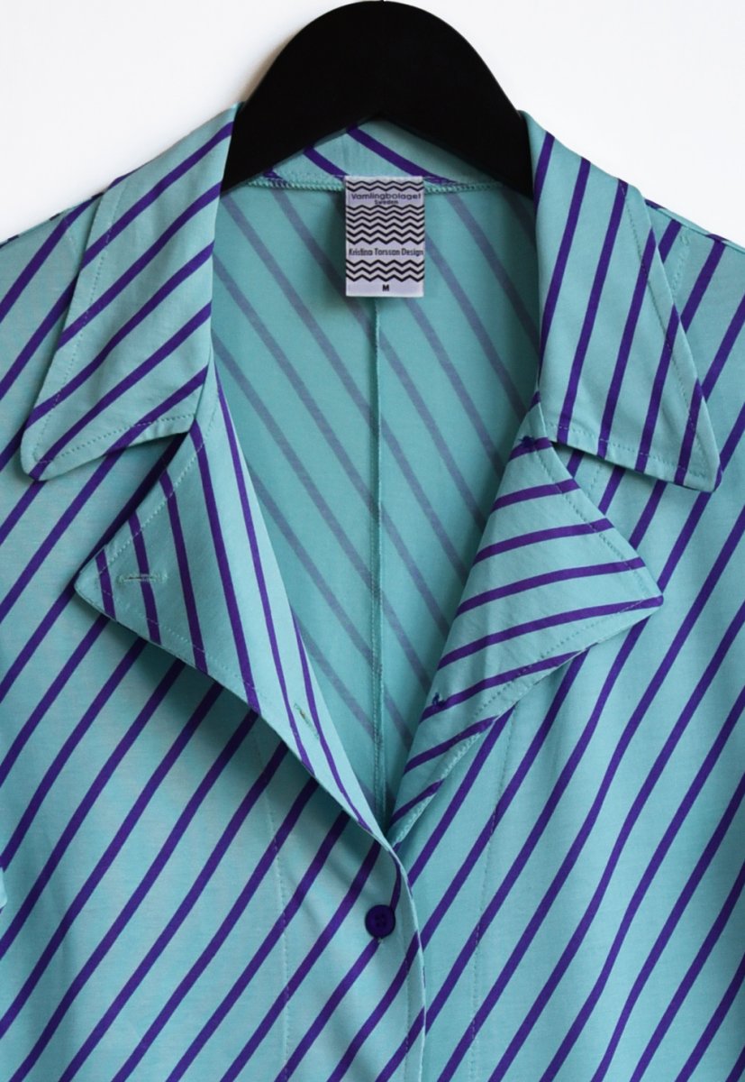 En underbar helknäppt jacka med kavajkrage. Fickor i sidorna. Vacker att knäppa ända upp i halsen och använda mer som en skjorta. Smal modell!