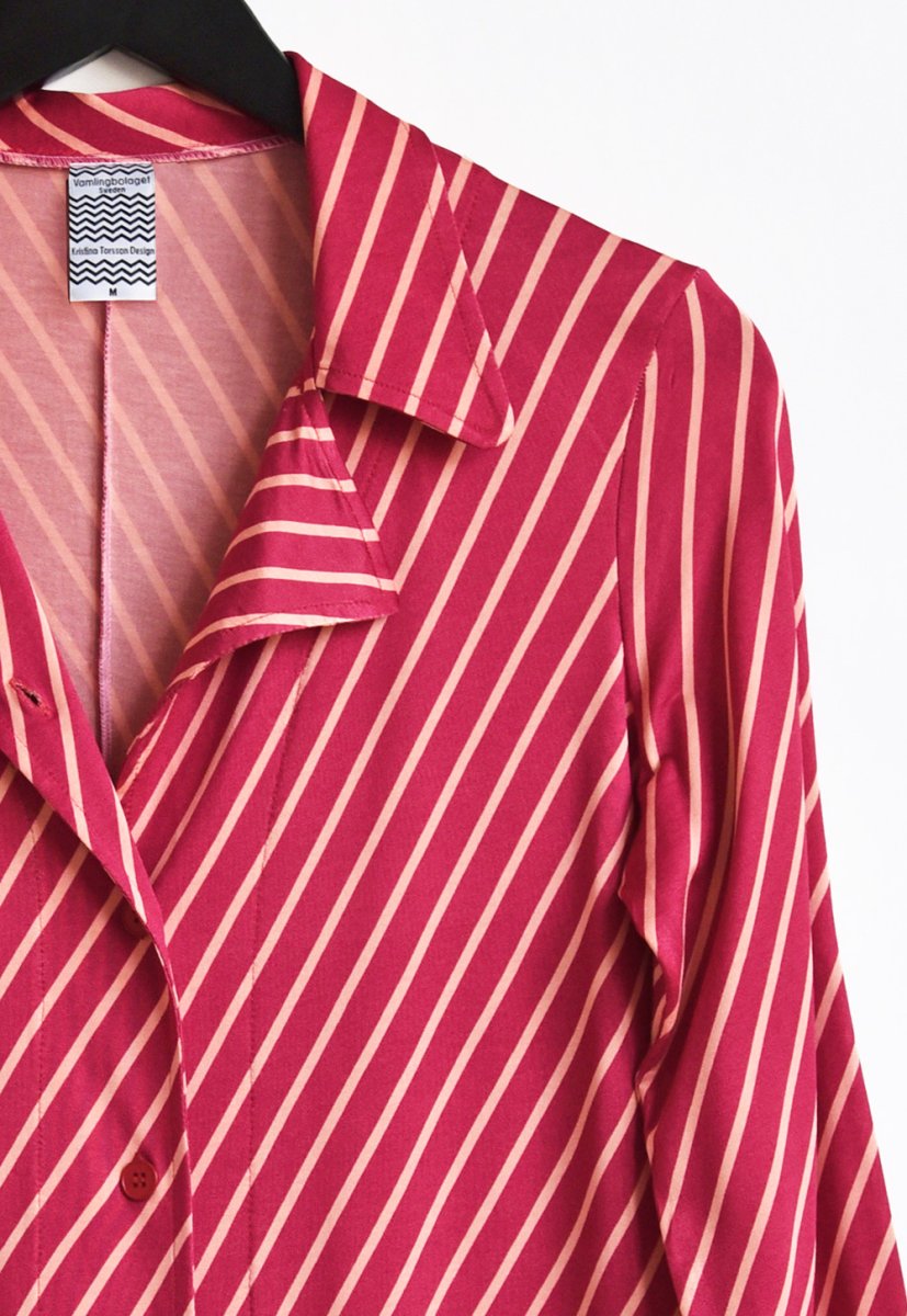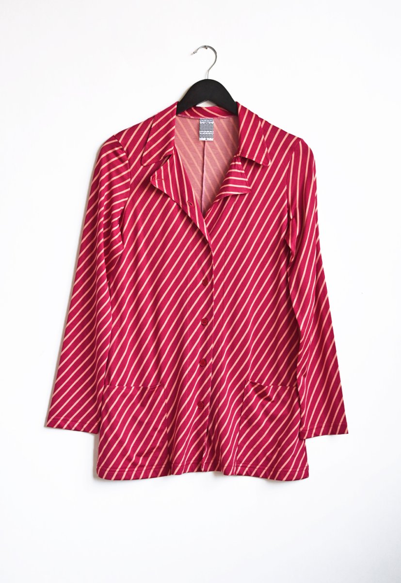 En underbar helknäppt jacka med kavajkrage. Fickor i sidorna. Vacker att knäppa ända upp i halsen och använda mer som en skjorta. Smal modell!