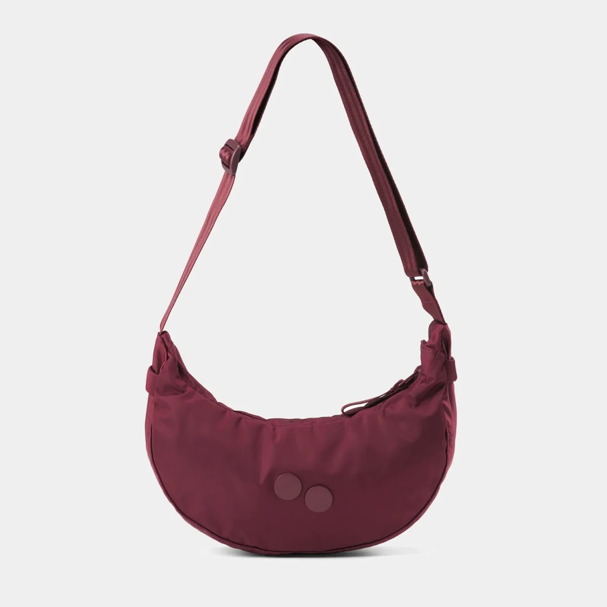 Krumm Small Glazed Red från Pinqponq är en riktigt fin crossbody-väska på 3,5L tillverkad av återvunnen ripstop-nylon med deras ikoniska logo ton-i-ton i puderlackad metall. Krumm har fått sitt namn då den har en böjd form som ”krummar sig”.