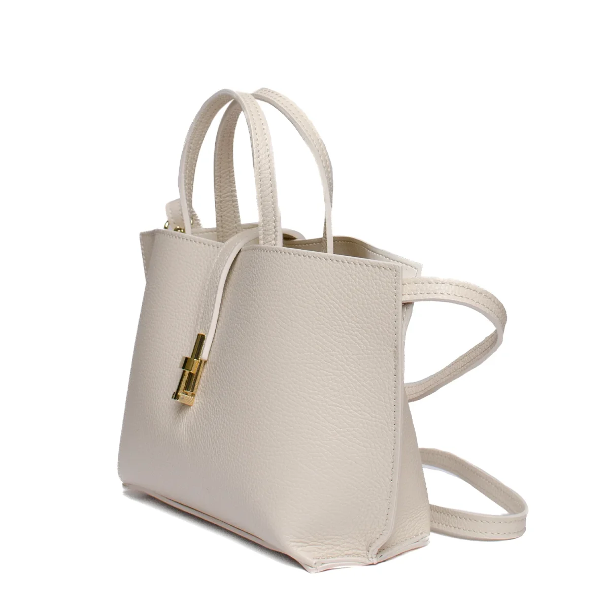 Den strukturerade formen gör att väskan håller sig snygg hela dagen, samtidigt som den känns smidig att bära. Den guldfärgade detaljen framtill ger ett exklusivt intryck utan att ta över.