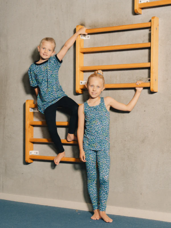 Mjuka leggings för barn. Tillverkade i vår bomullskvalitet, som är mjuk och skön att ha på sig. Dessa leggings är en vidareutveckling av vår modell NS-142. Som många av er har kommenterat kunde den gamla modellen vara trång för barn att få över anklarna. Vi har därför gjort flera justeringar i hopp om att kunna ge er en modell som ni gillar ännu bättre. Förutom mer utrymme vid vristerna har den nya modellen lite mer resår i magen och något kortare ben. När du beställer till lektioner kan du betala med faktura. Detta gör du genom att lägga önskade artiklar i korgen, vid utcheckning väljer du ”företag” högst upp när du fyller i dina uppgifter, och här får du möjlighet att ange föreningsnamn och CVR-nummer. När du betalar kan du sedan välja att betala med faktura. Färgerna ”rainbow tiger” och ”dark green” är slut i lager. Vi kan därför inte garantera lagerhållning i alla storlekar.