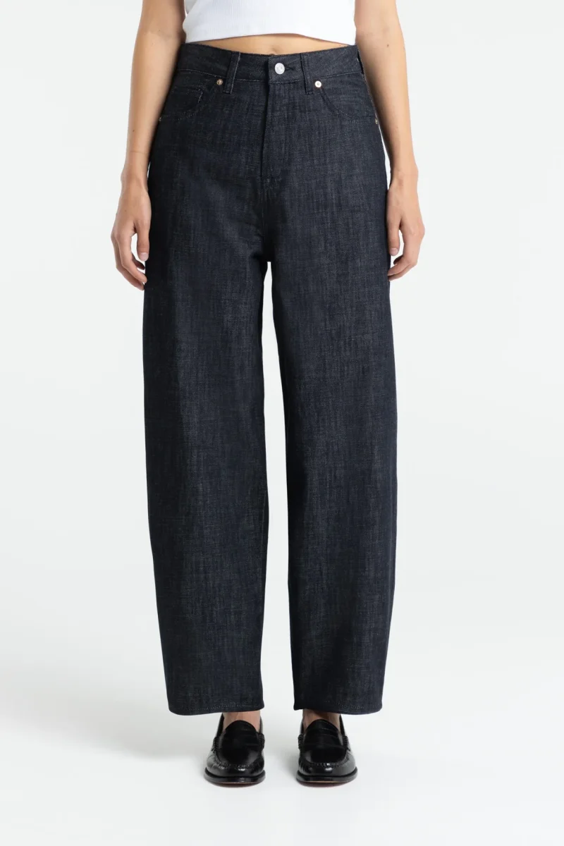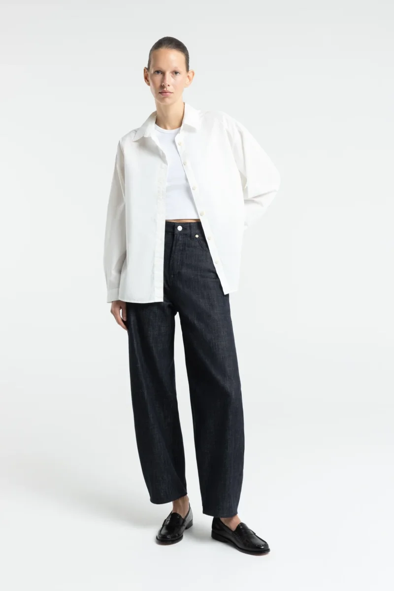 Leila har en hög midja och vida, lite ballongformade ben som går in en snutta precis i slutet. En otroligt populär modell som nu äntligen också sytts upp i ett fräscht rejält tyg i 100% ekologisk bomull.