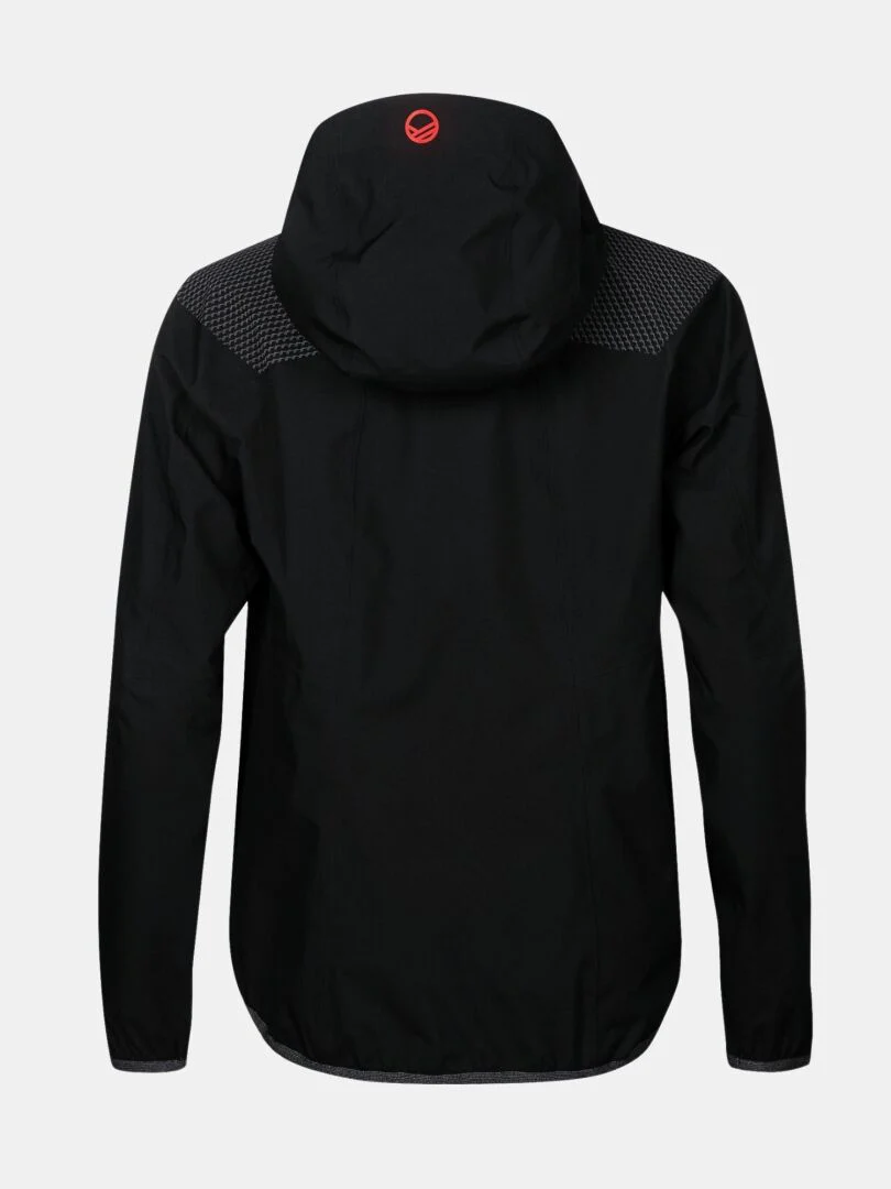 Jackan har en extra ficka i sidosömmen och justerbar huva. Lätt, flexibelt material och formade ärmar ger rörelsefrihet. Reflekterande 360°-detaljer ger extra säkerhet i mörker under höst och vinter. Jackan är tillverkad av återvunnen polyester.