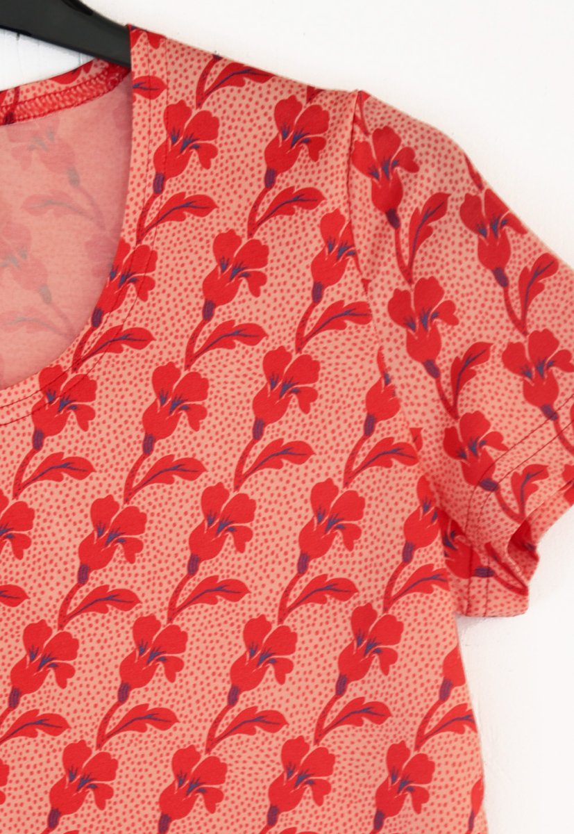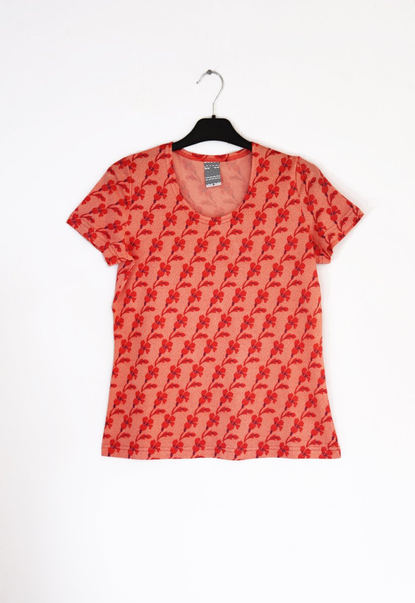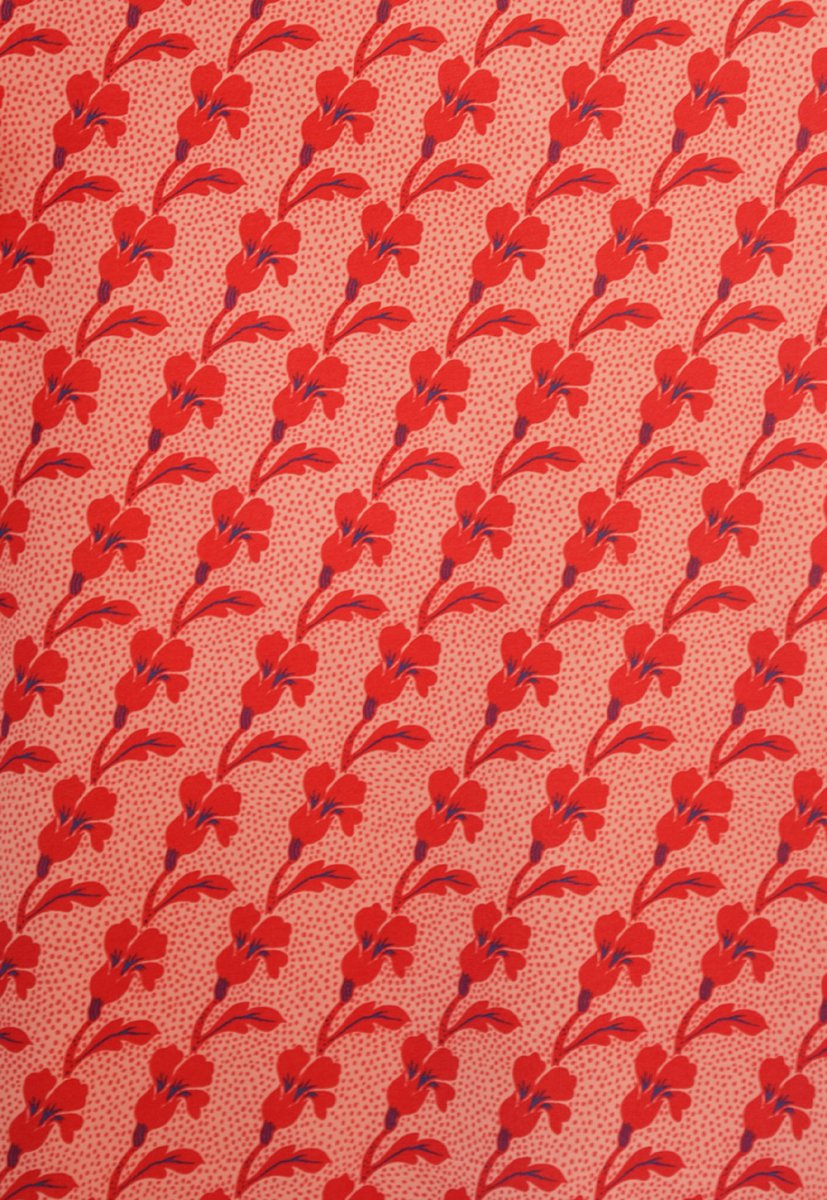 Här är vårt nya mönster TULPANLILJA! Blomman med vinkande blad lutar på en bakgrund av prickar. Mönstret finns i en röd och i en turkos variant.