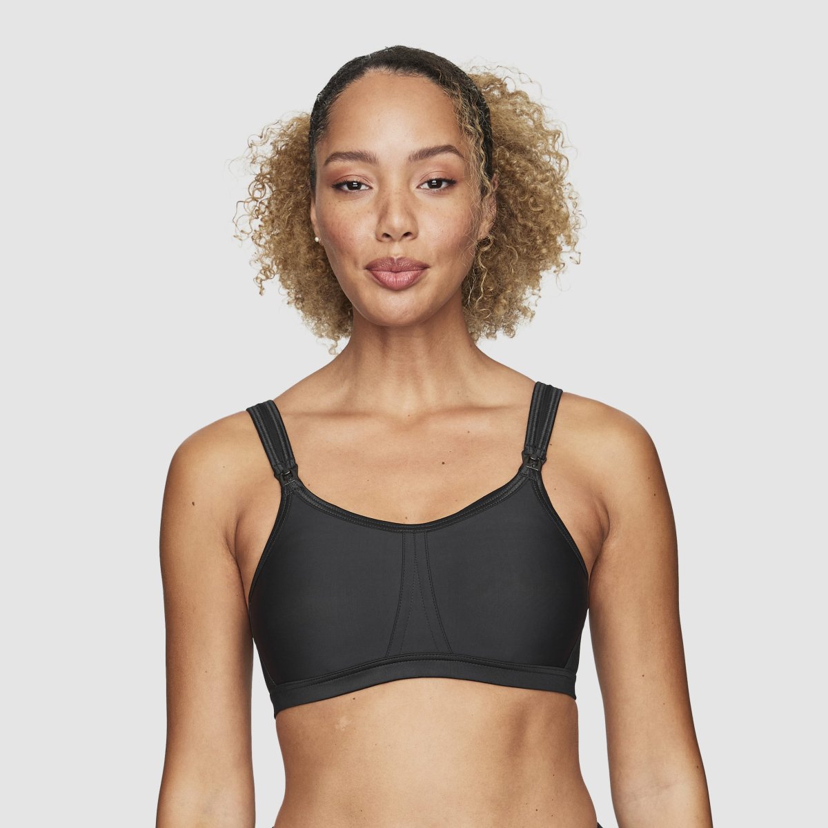 Amnings-Bh utan bygel i material som andas och transporterar fukt. Stabil och bekväm bh som ger bra stöd och som håller bysten på plats. För en smidigare amning utan krångel är spännena vid kupan lätta att knäppa.