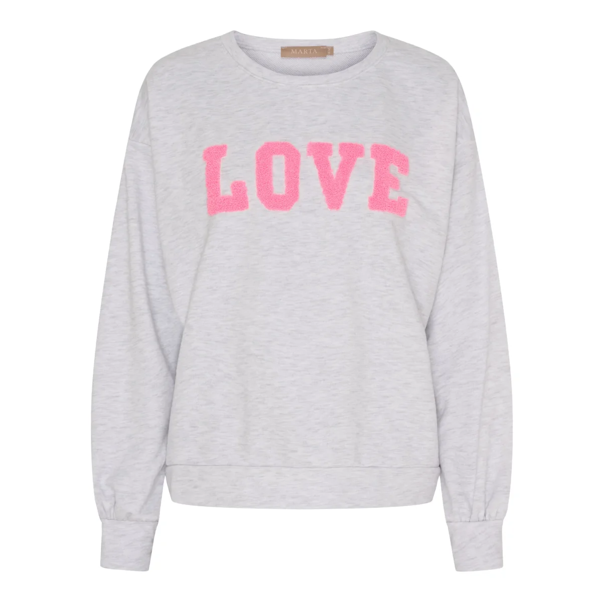 Den grå basen matchas fint med det rosa LOVE-trycket framtill som ger tröjan ett lekfullt och modernt uttryck. De ribbade muddarna och den klassiska rundhalsade designen gör den enkel att bära och lätt att styla.