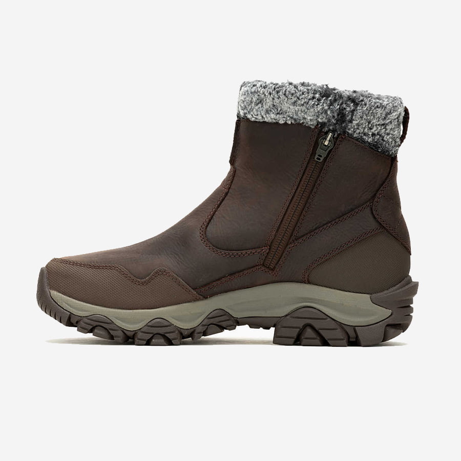 Det här är en varm och behaglig vinterkänga. Enkel att kliva i, tack vare den praktiska dragkedjan som placerats på insidan av skaftet, och komfortabel att promenera i. Med det vattentäta membranet och ovandelen i läder får du en känga som håller från tidig höst till sen vinter. Med 200 gram isolering och en fleece innerdel hålls fötterna effektivt varma. Merrell Coldpack 3 Thermo Mid Zip WP Dam gör det möjligt att njuta av promenader i skogen under kalla vinterdagar eller turer på stan. Den fungerar lika väl vid bägge dessa tillfällen. Med Vibram Arctic Grip ger den också tryggt grepp när underlaget blir lite halkigt.