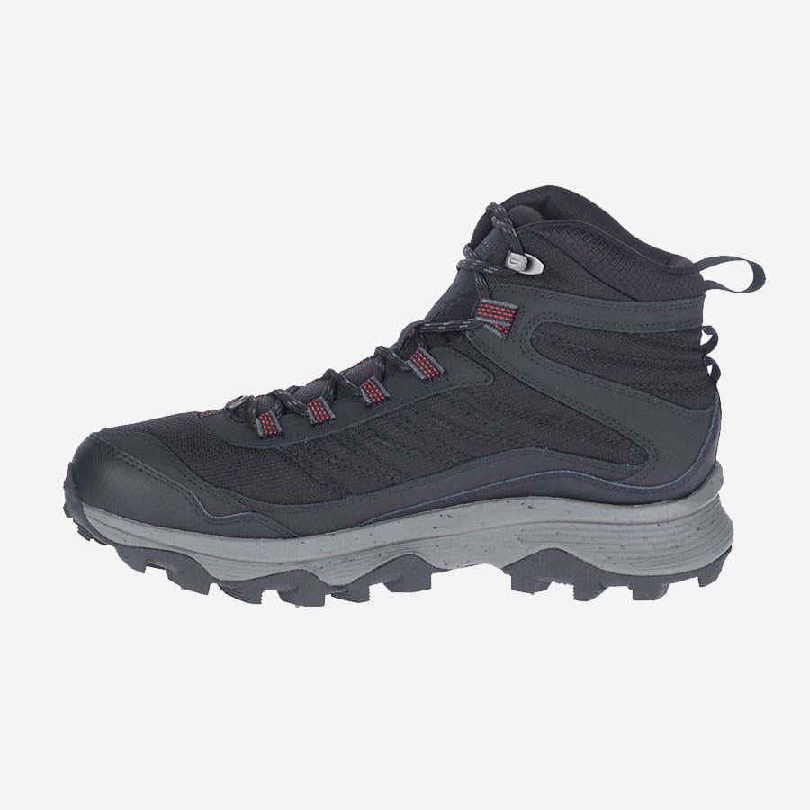 När det är halt ute och du vill slippa fundera på att halka, då är Merrell Moab Speed Thermo Mid Waterproof Spike det självklara valet. Med tio greppvänliga dubbar under sulan har du suveränt fäste på både is och snö. Självklart är modellen också vattentät och varmfodrad så kyla och snö är inget du behöver fundera på heller. Bara remma på dig kängorna och bege dig ut.