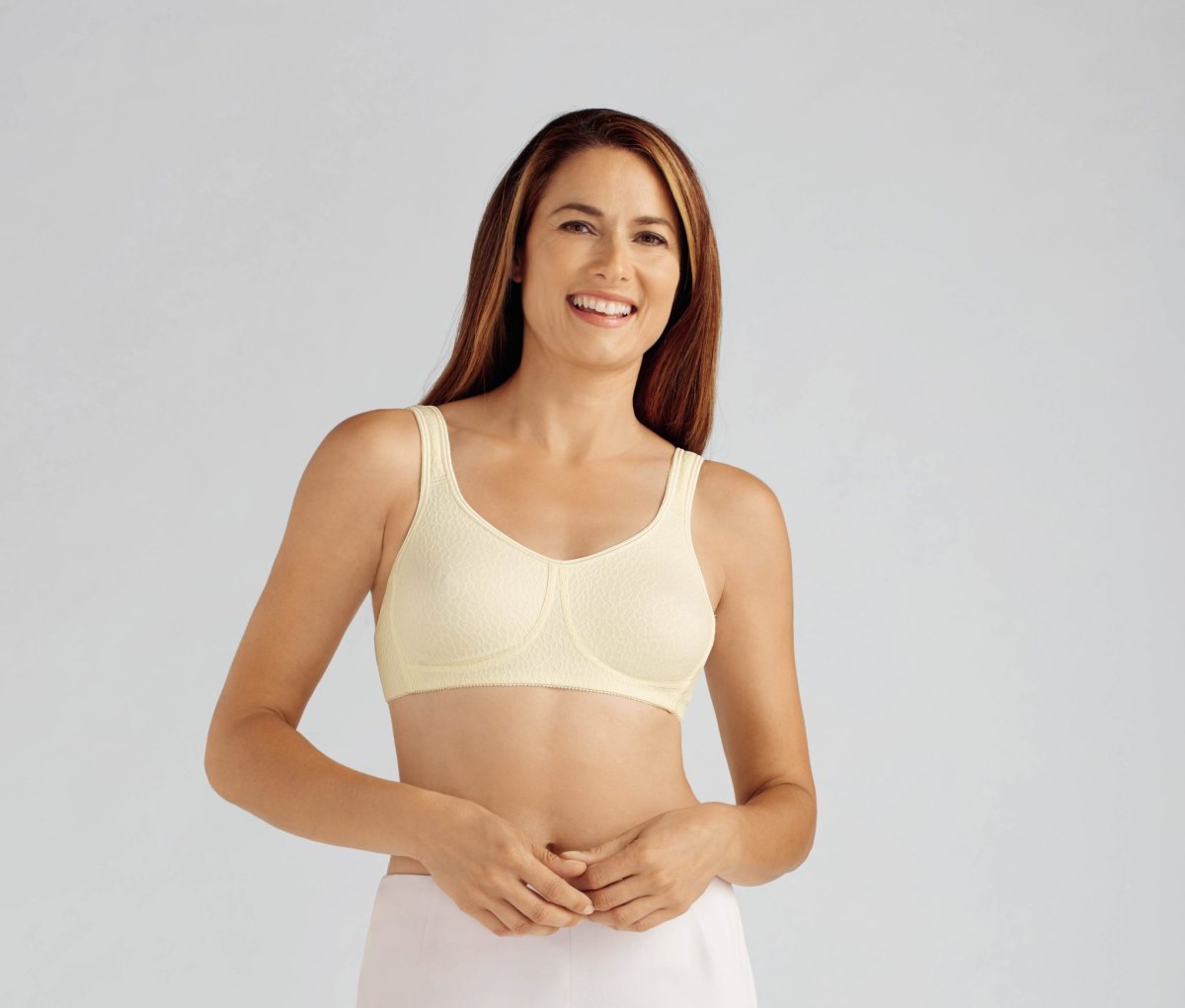 Populär mjuk bh från Amoena med fickor för bröstprotes. Formpressade kupor, perfekt under tunna kläder. Meryl microfiber ger bästa komfort och support. Mjukt stoppade axelband