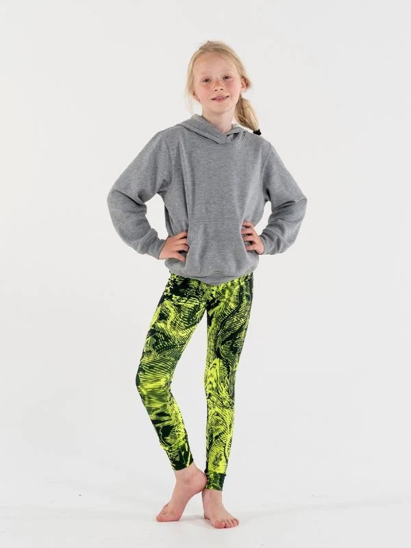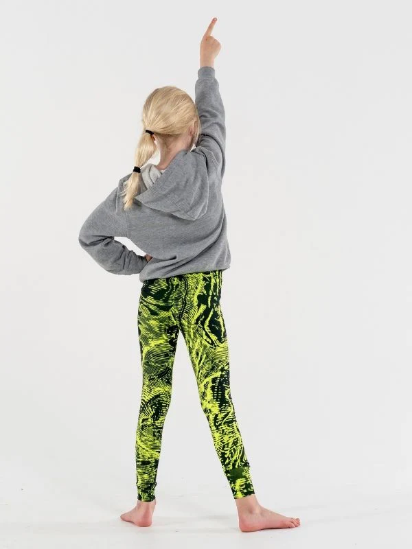 Gymnastikleggings för barn. Tillverkade i en stretchig och skön kvalitet som barnen kan röra sig fritt i. Midjan är medelhög och storlekarna är true to size. Flickan på bilden bär storlek 10. Dessa leggings är slut i lager.