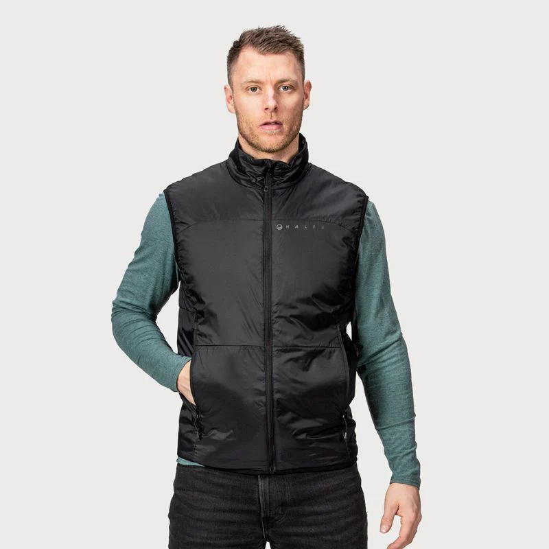Det minimalistiska uttrycket gör den tidlöst elegant, medan de praktiska detaljerna förbättrar funktionaliteten. Västen har tre fickor med dragkedja som rymmer dina viktigaste saker.