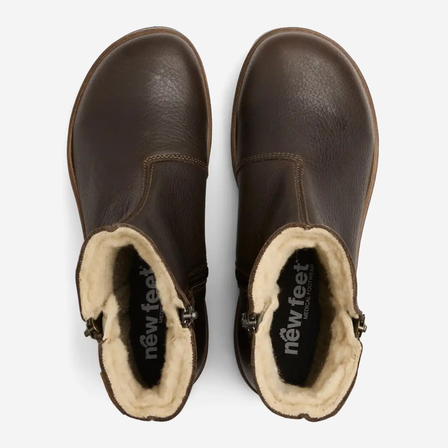 New Feet 192-81 är en lätt, varm och behaglig känga/boot med dragkedja på både in- och utsidan. Det gillar vi skarpt för det gör den enkel att kliva både i och ur. Ovandel i fint läder med värmande foder på insidan. Ett vattenavvisande membran håller fukt och väta ute och fötterna torra.