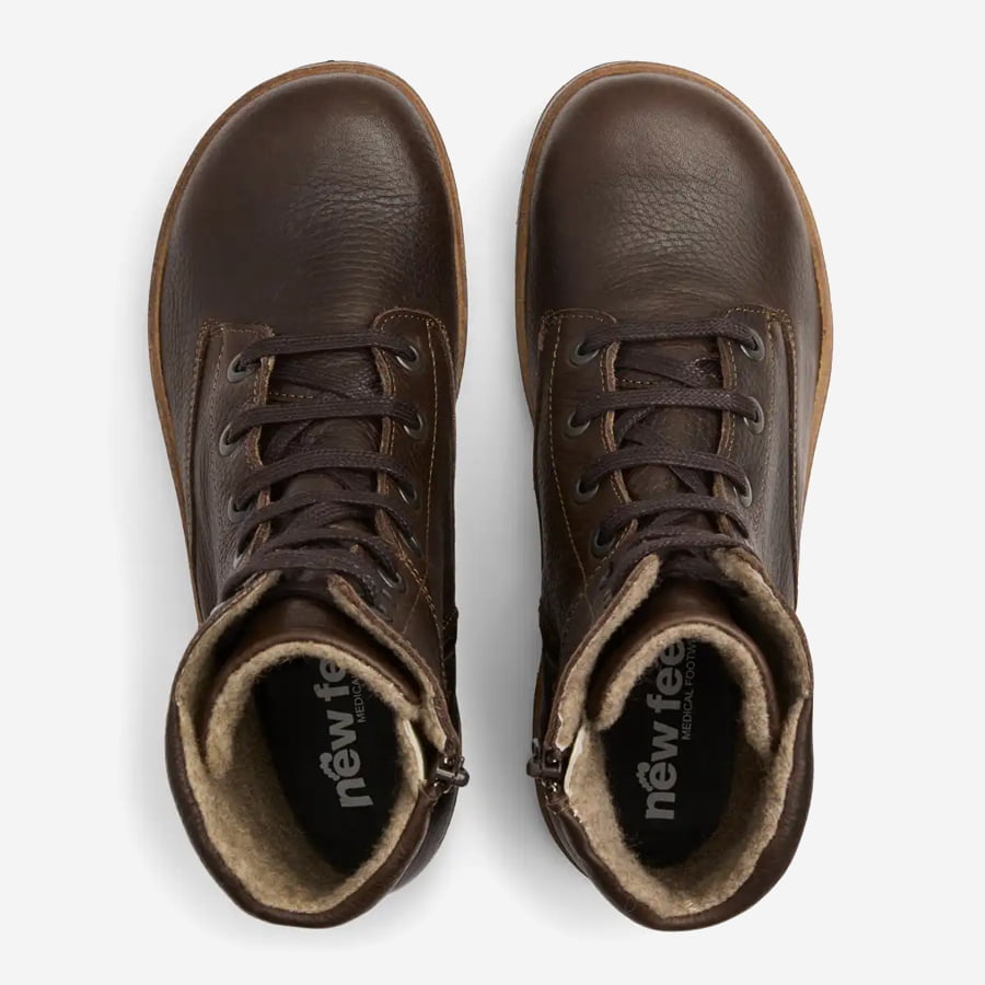New Feet 192-83 är en smidig, varmfodrad känga med både snörning och dragkedja. Det är en praktisk lösning då du knyter den en gång och sen kan använda dragkedjan på insidan varje gång du kliver i eller ur. Ovandelen på New Feet 192-83 är skinn och har en vattenavvisande funktion.